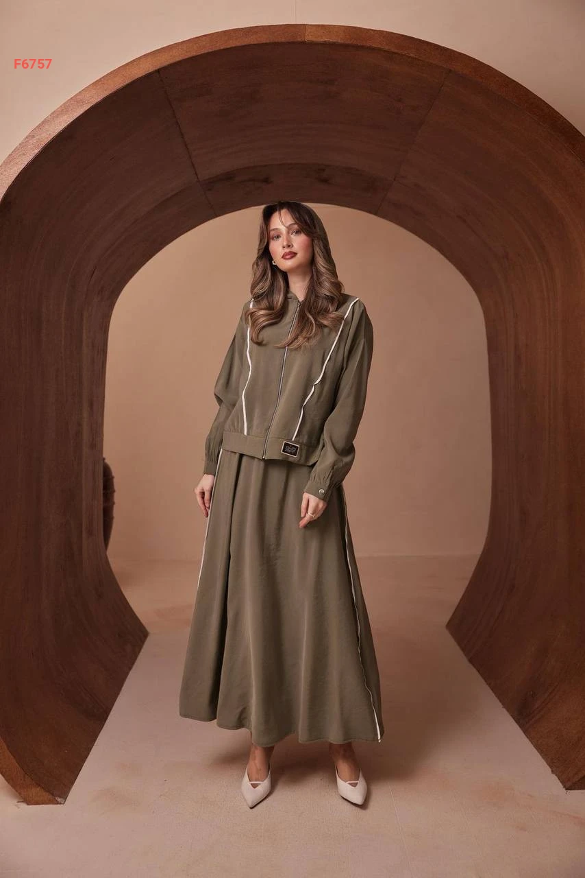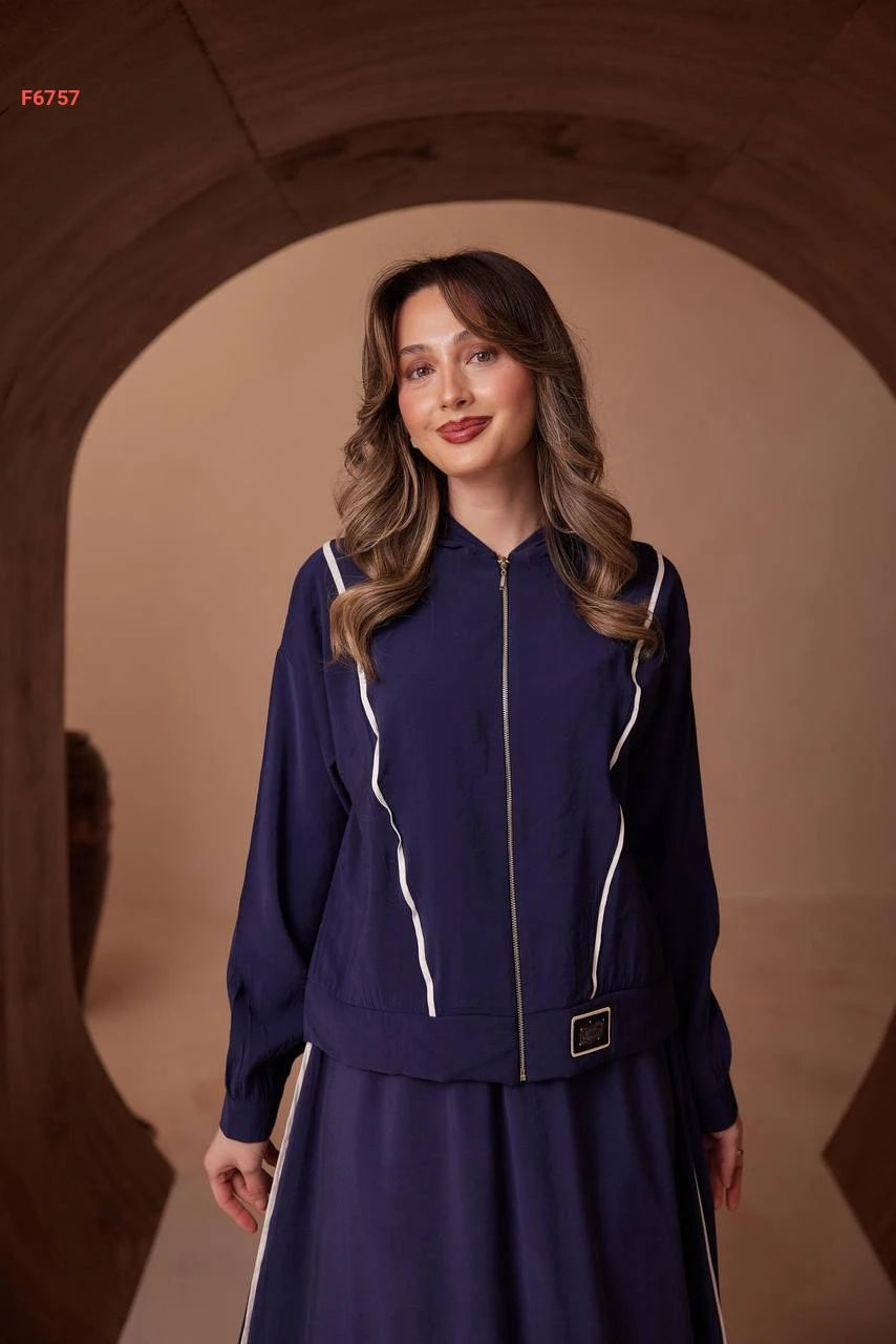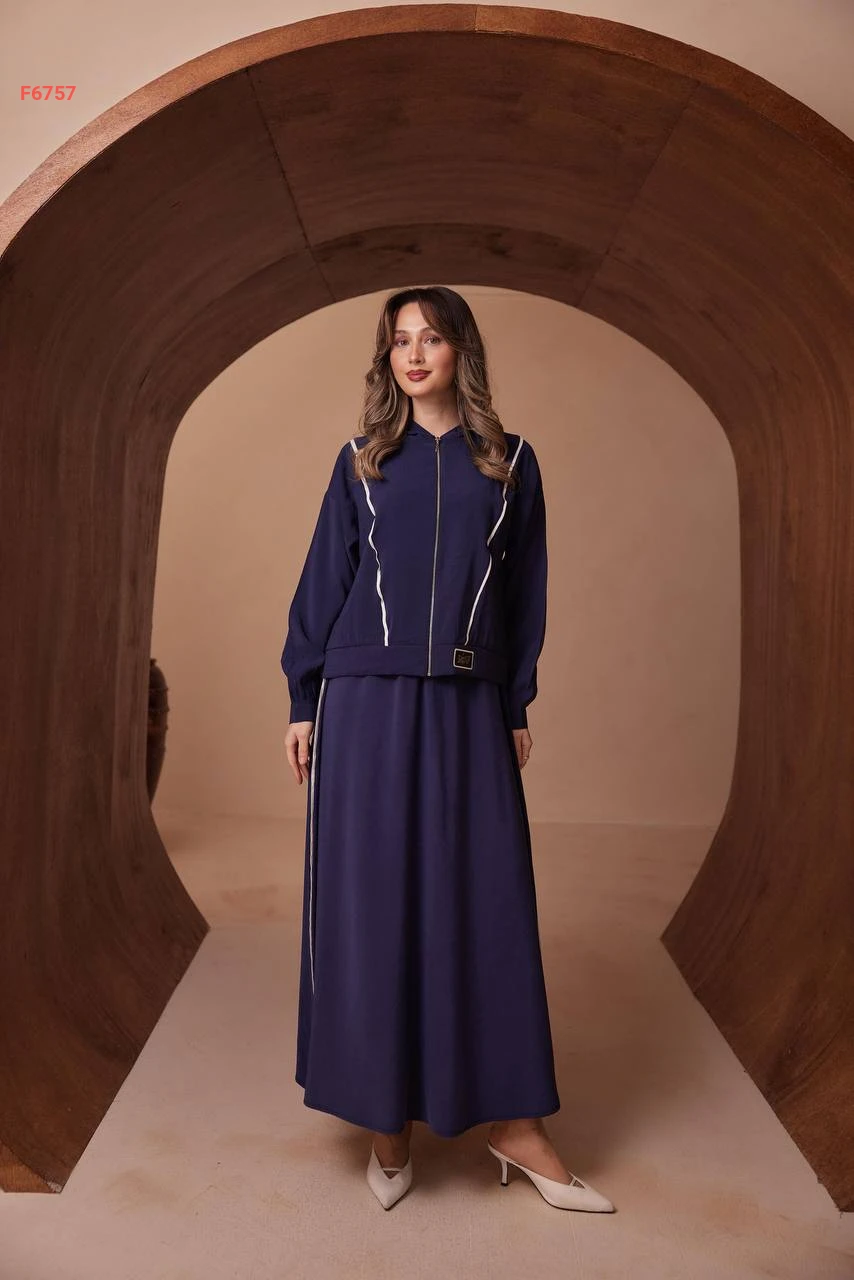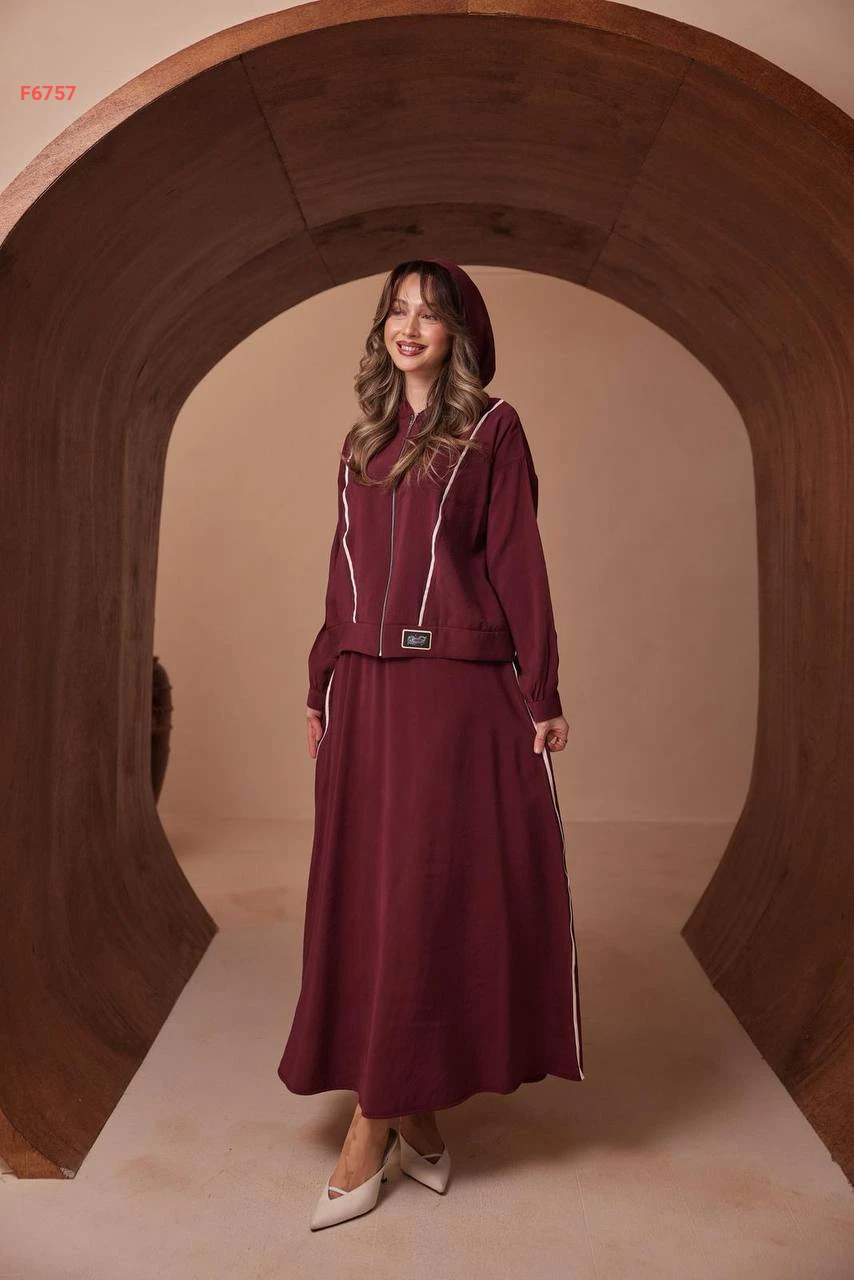 طقم تنورة طويل مودال وجاكيت بسحاب