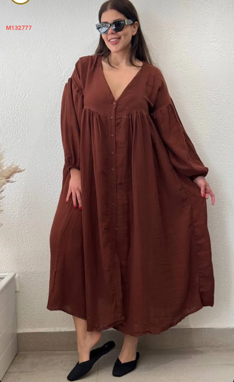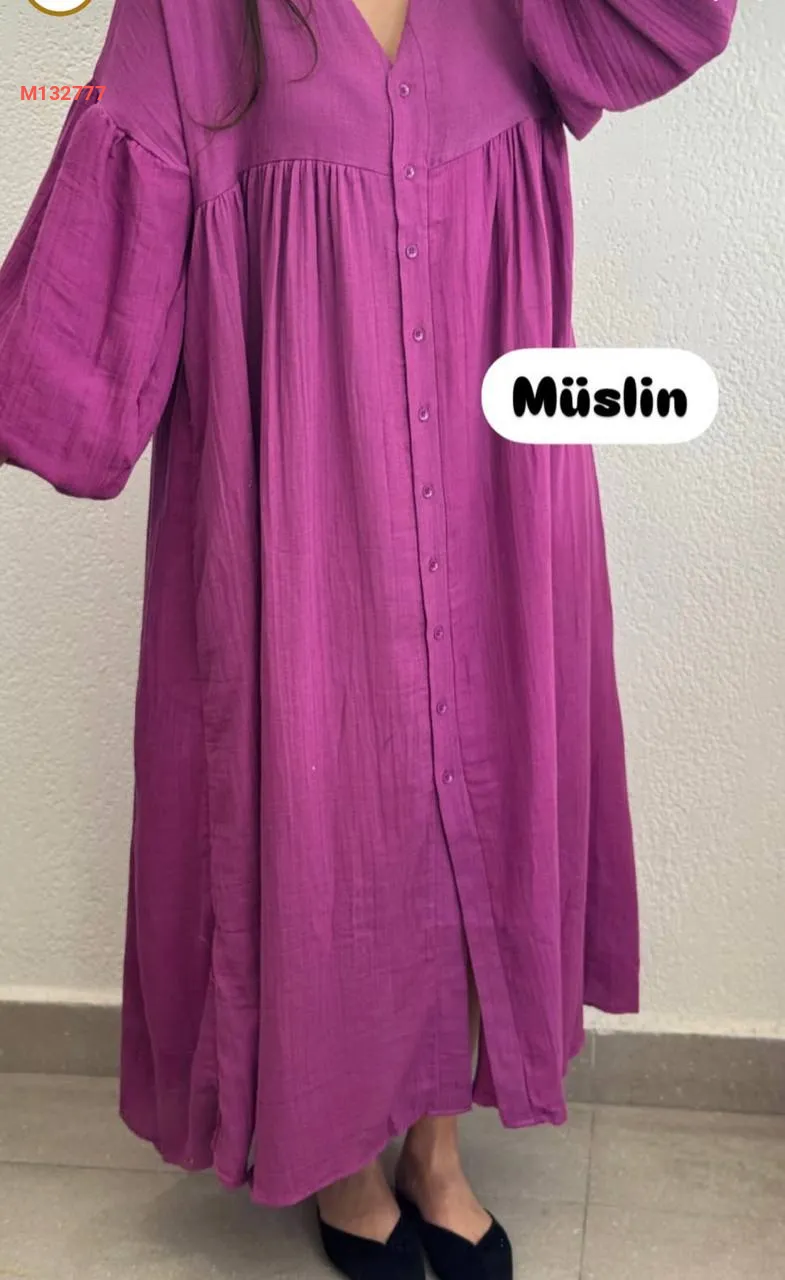 فستان طويل موسلين بأزرار