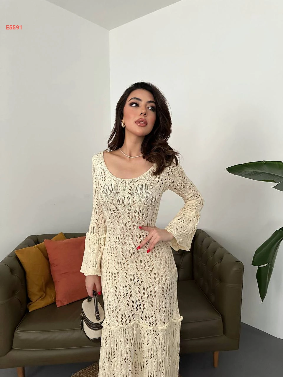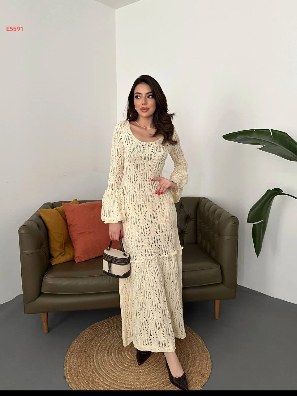 فستان تريكو طويل مفرغ