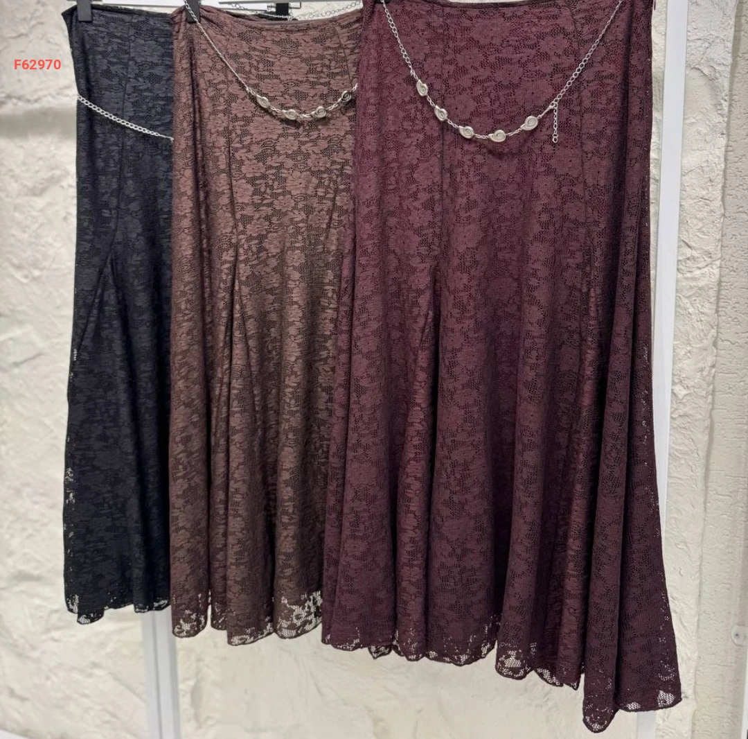 تنورة طويلة دانتيل مبطن مع سلسلة