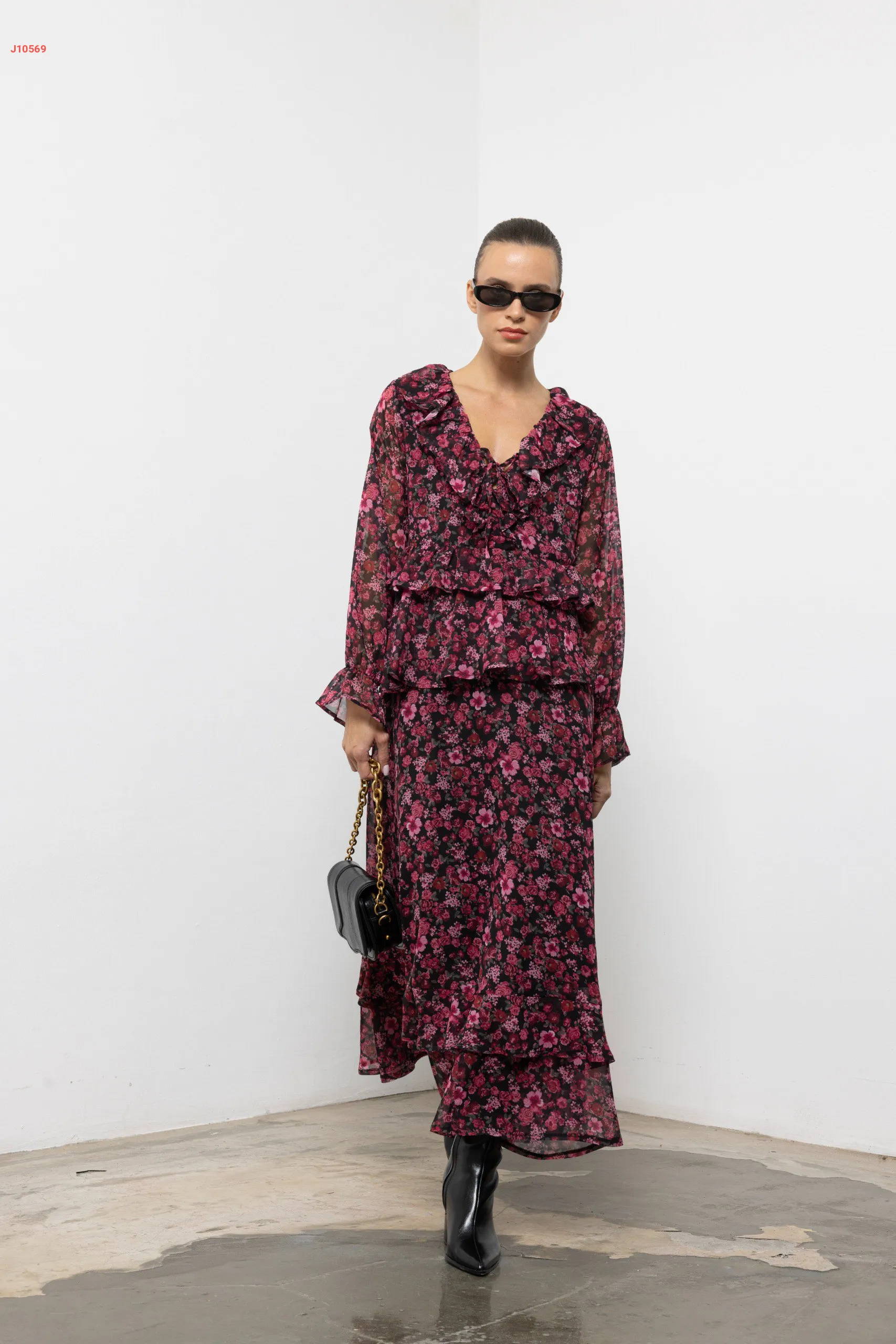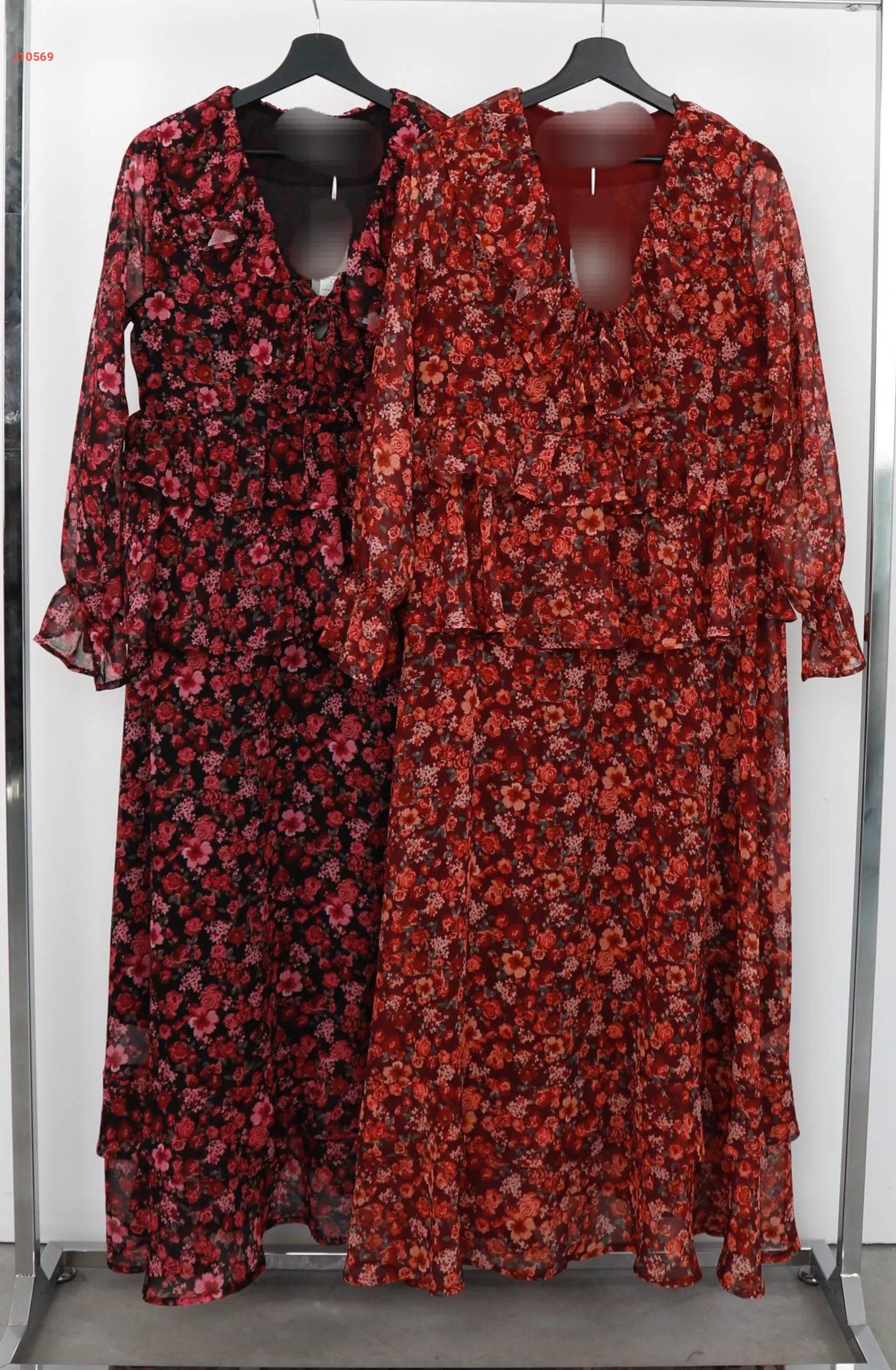 فستان طويل شيفون منقوش