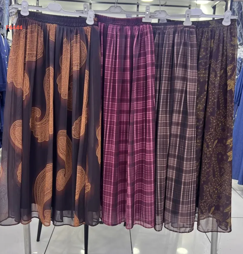 تنورة طويلة شيفون منقوشة