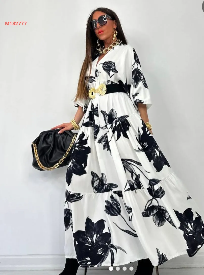 فستان طويل منقوش