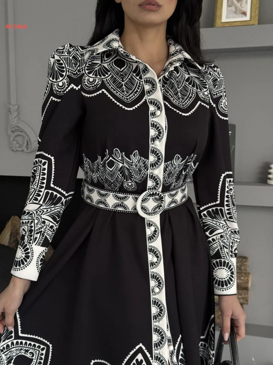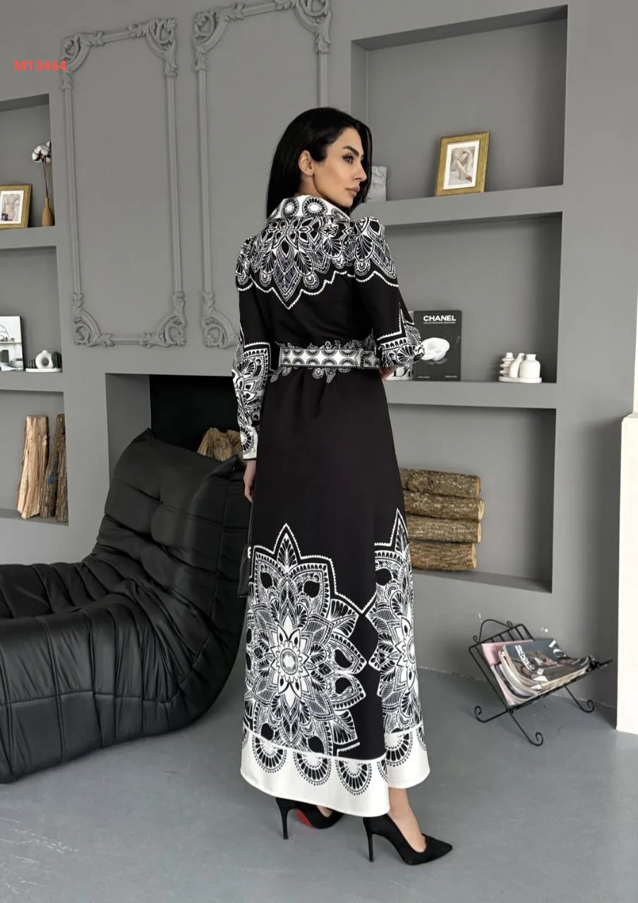 فستان طويل منقوش بأزرار