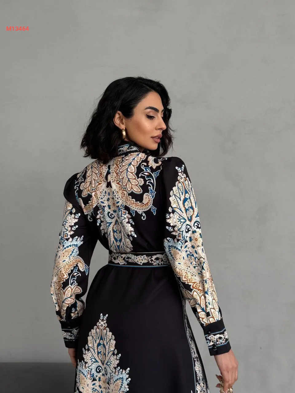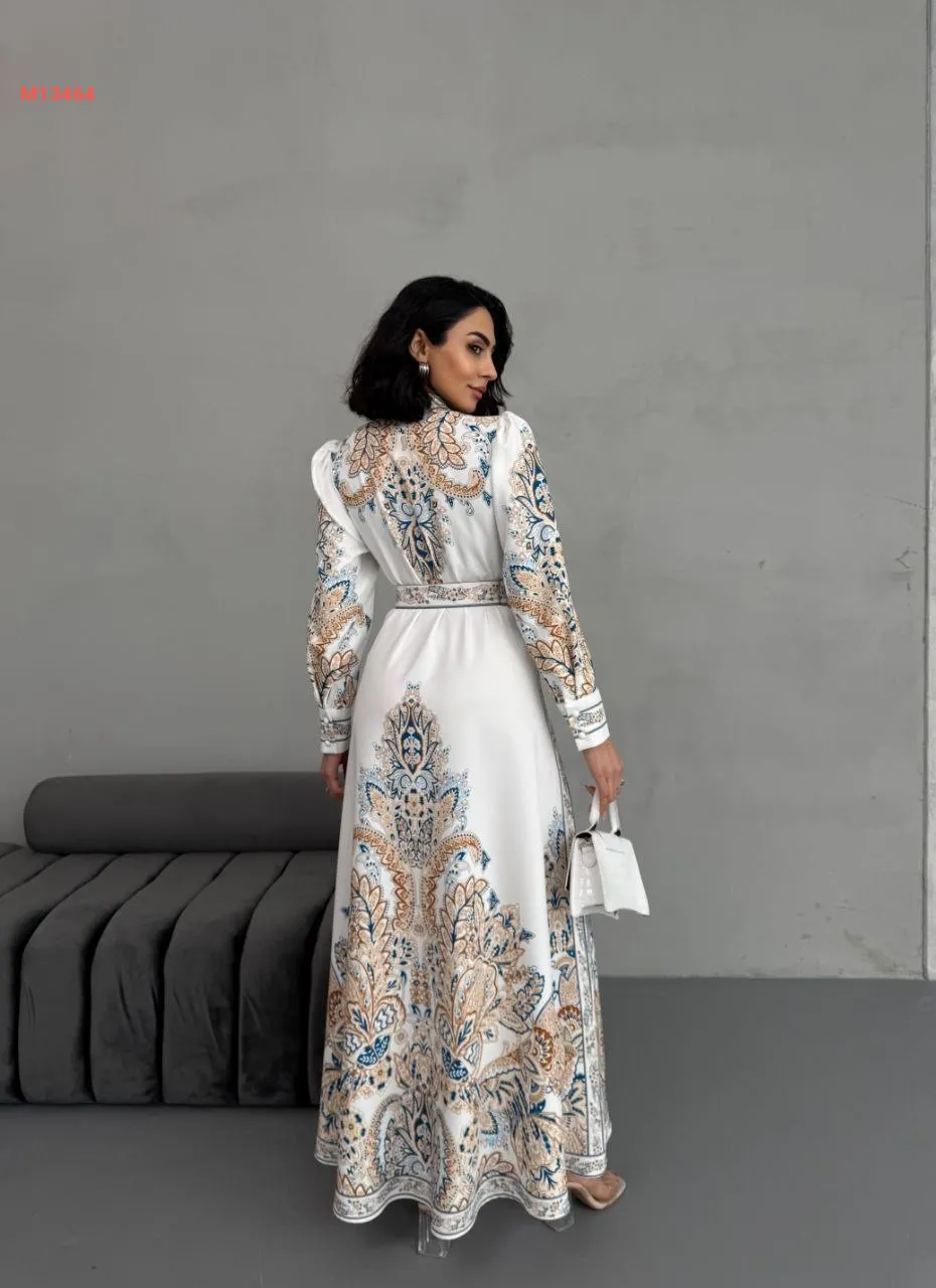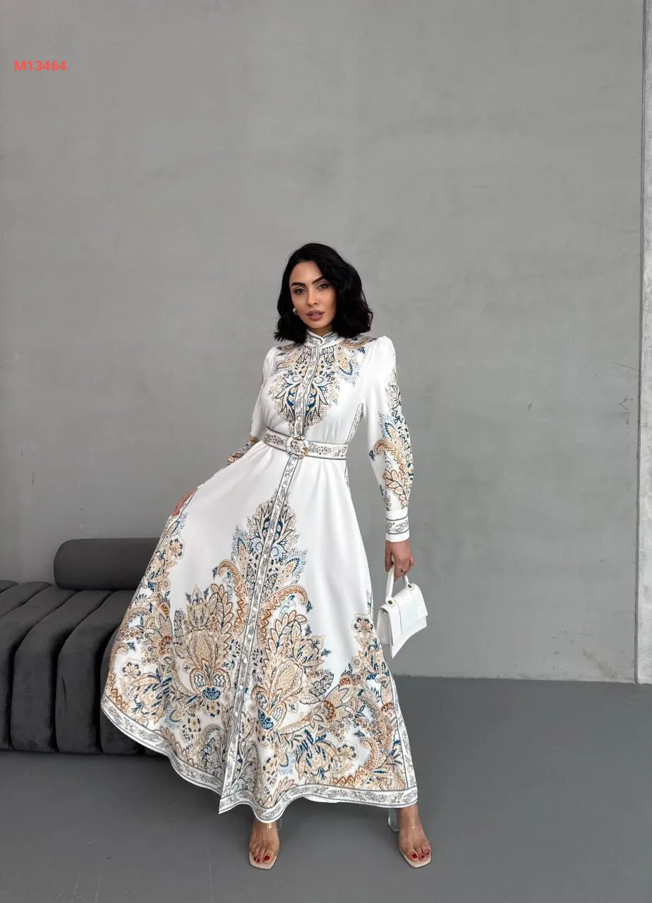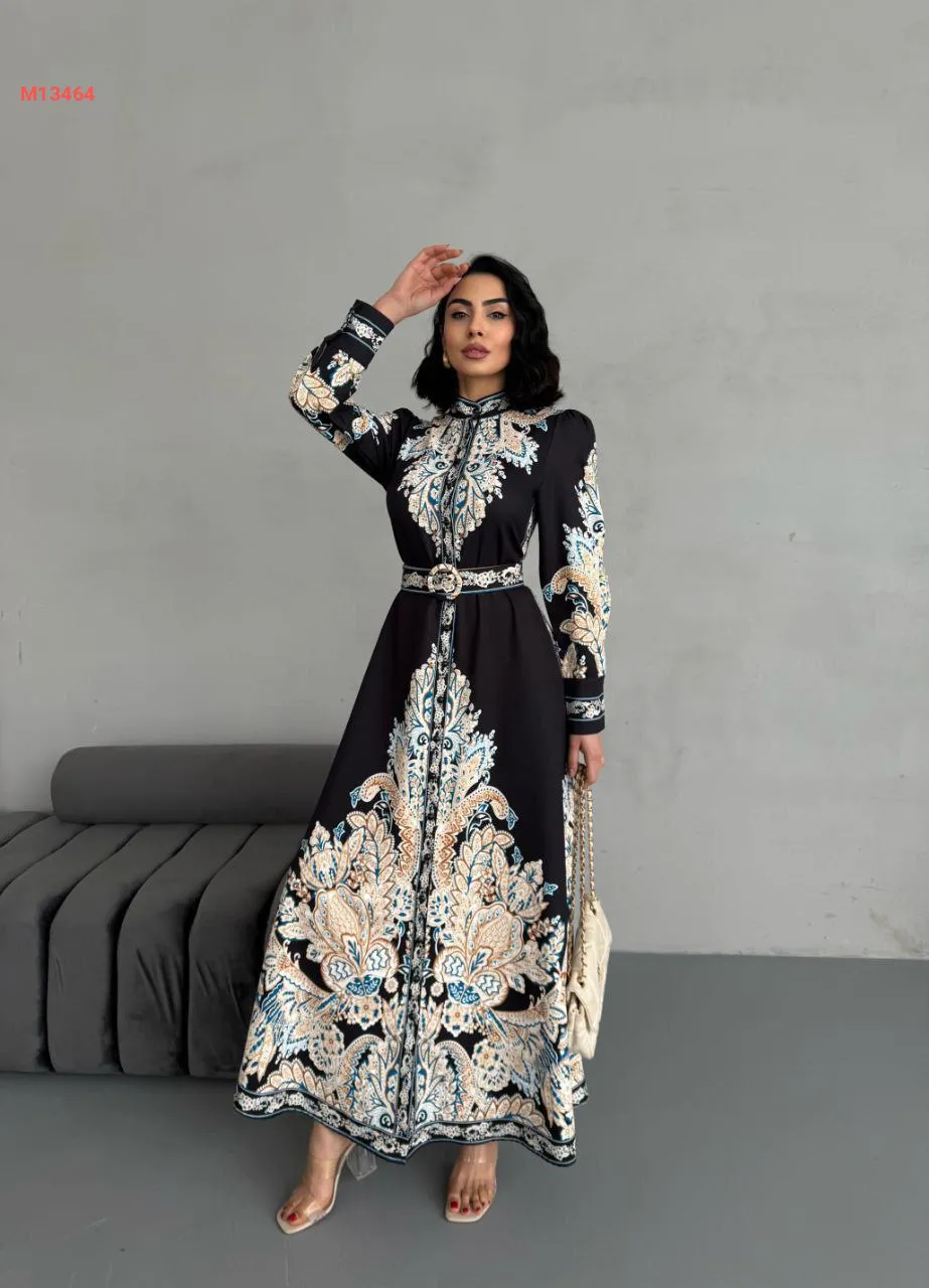 فستان طويل منقوش بأزرار