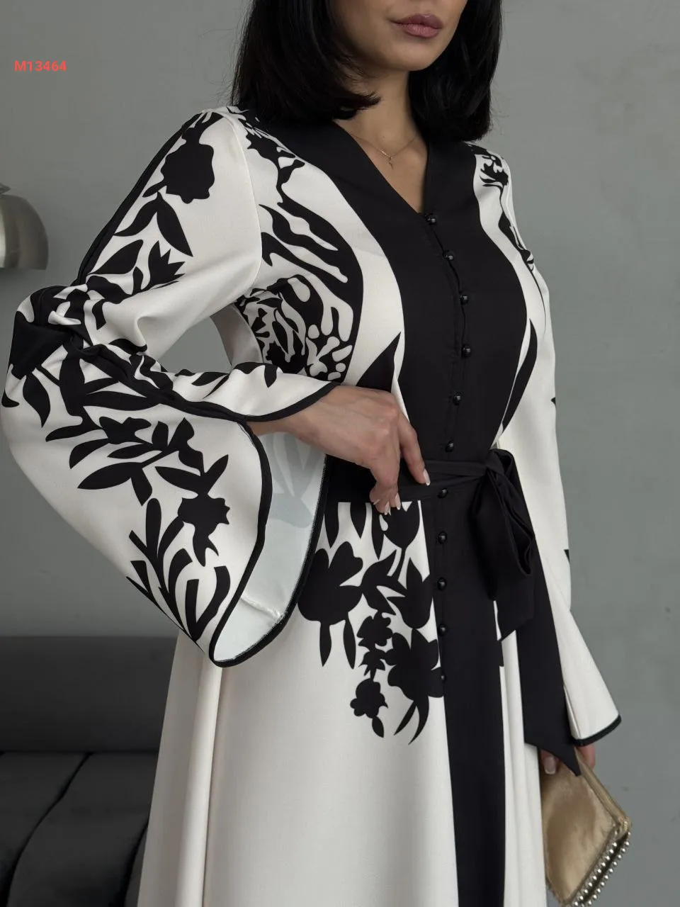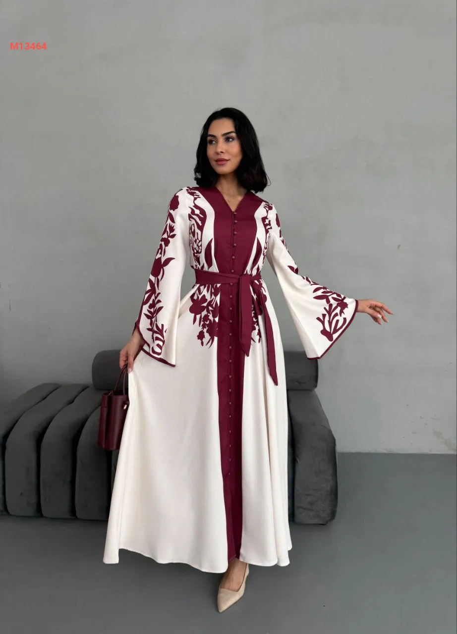 فستان طويل منقوش بأزرار