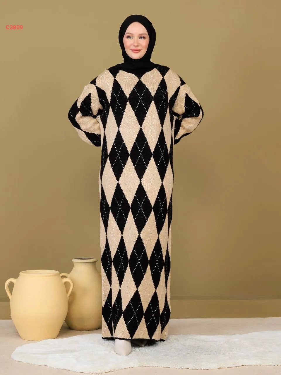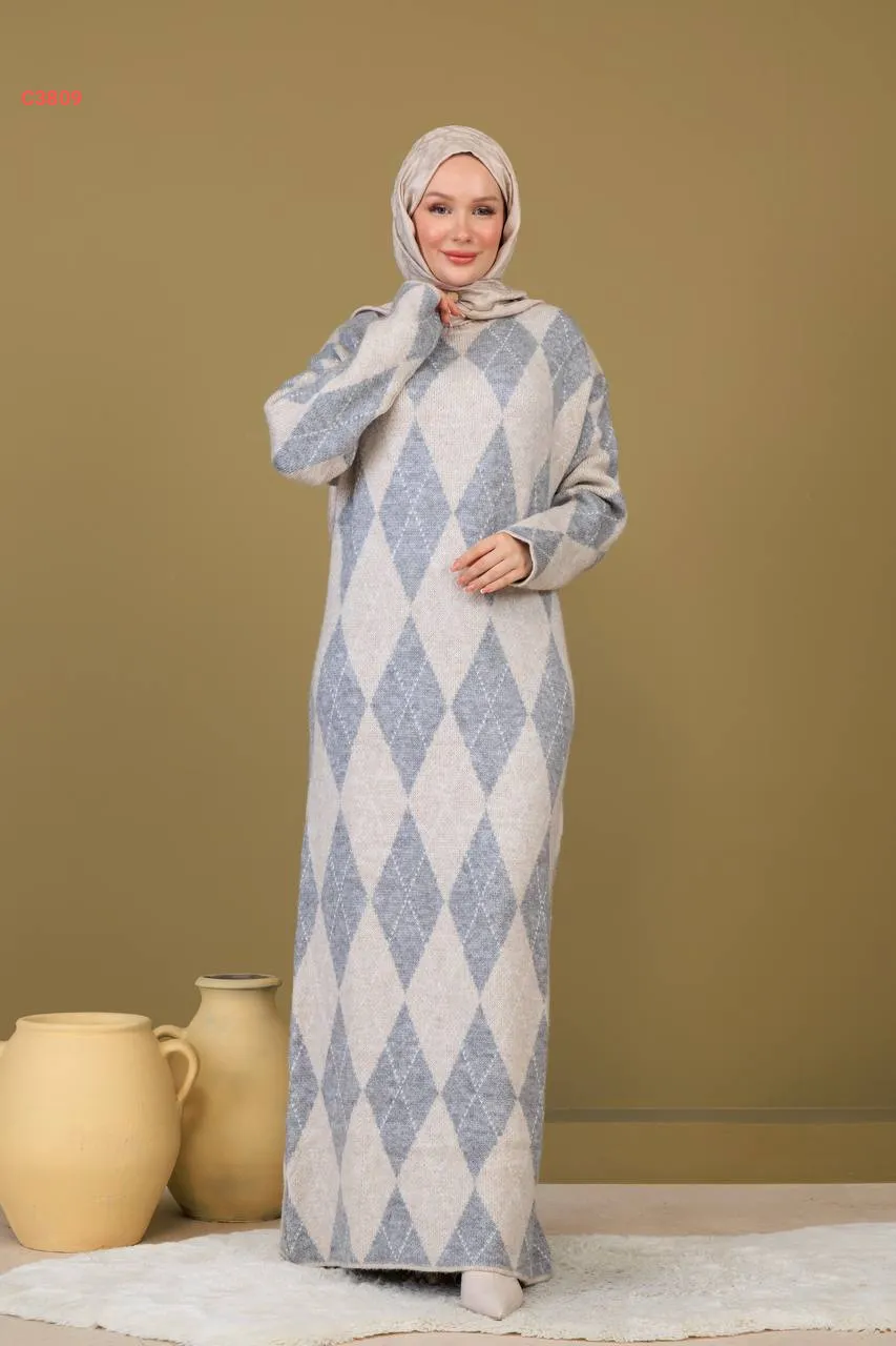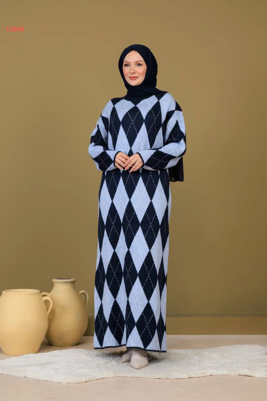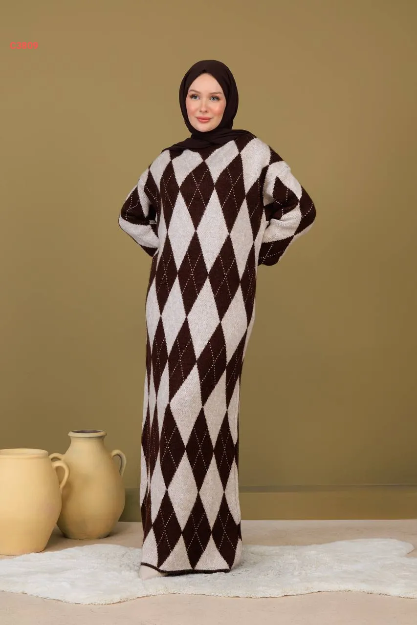 فستان تريكو طويل منقوش