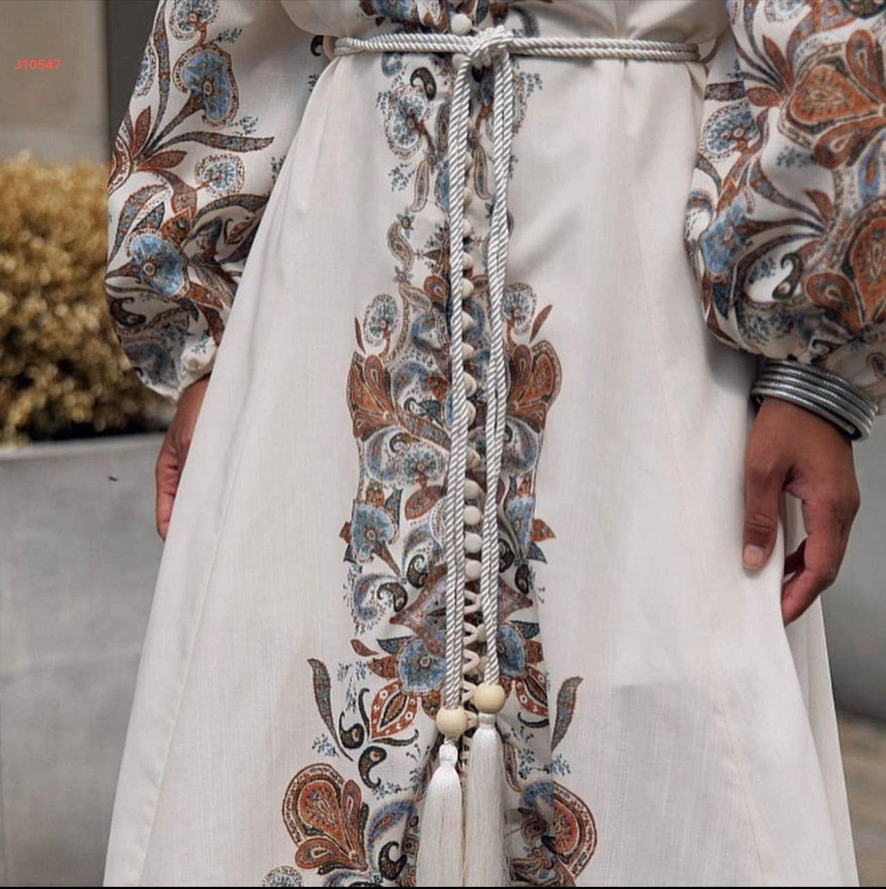 فستان طويل كتان منقوش