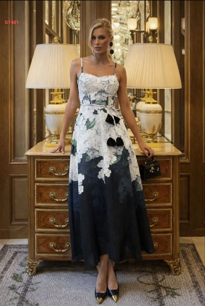 فستان طويل كتان منقوش
