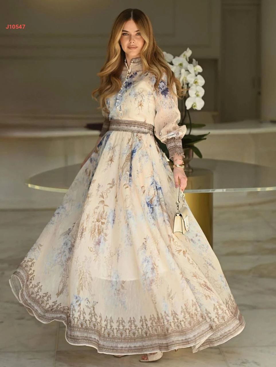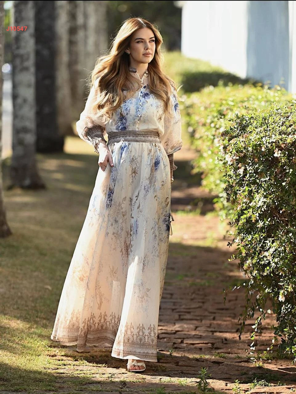 طقم تنورة طويل منقوش مع بلوزة