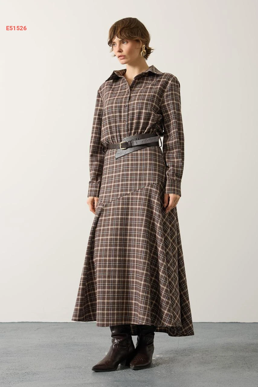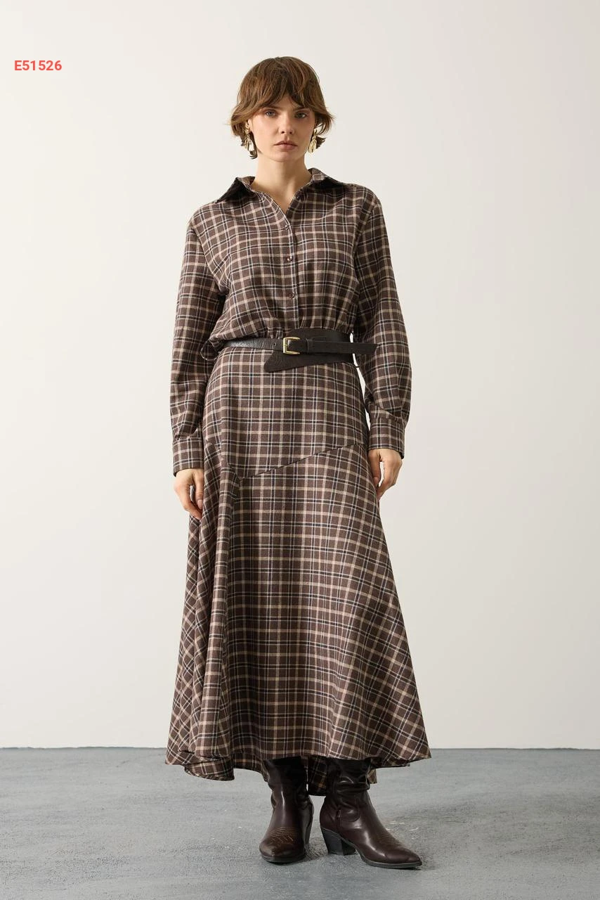 فستان طويل كارو بنصف أزرار