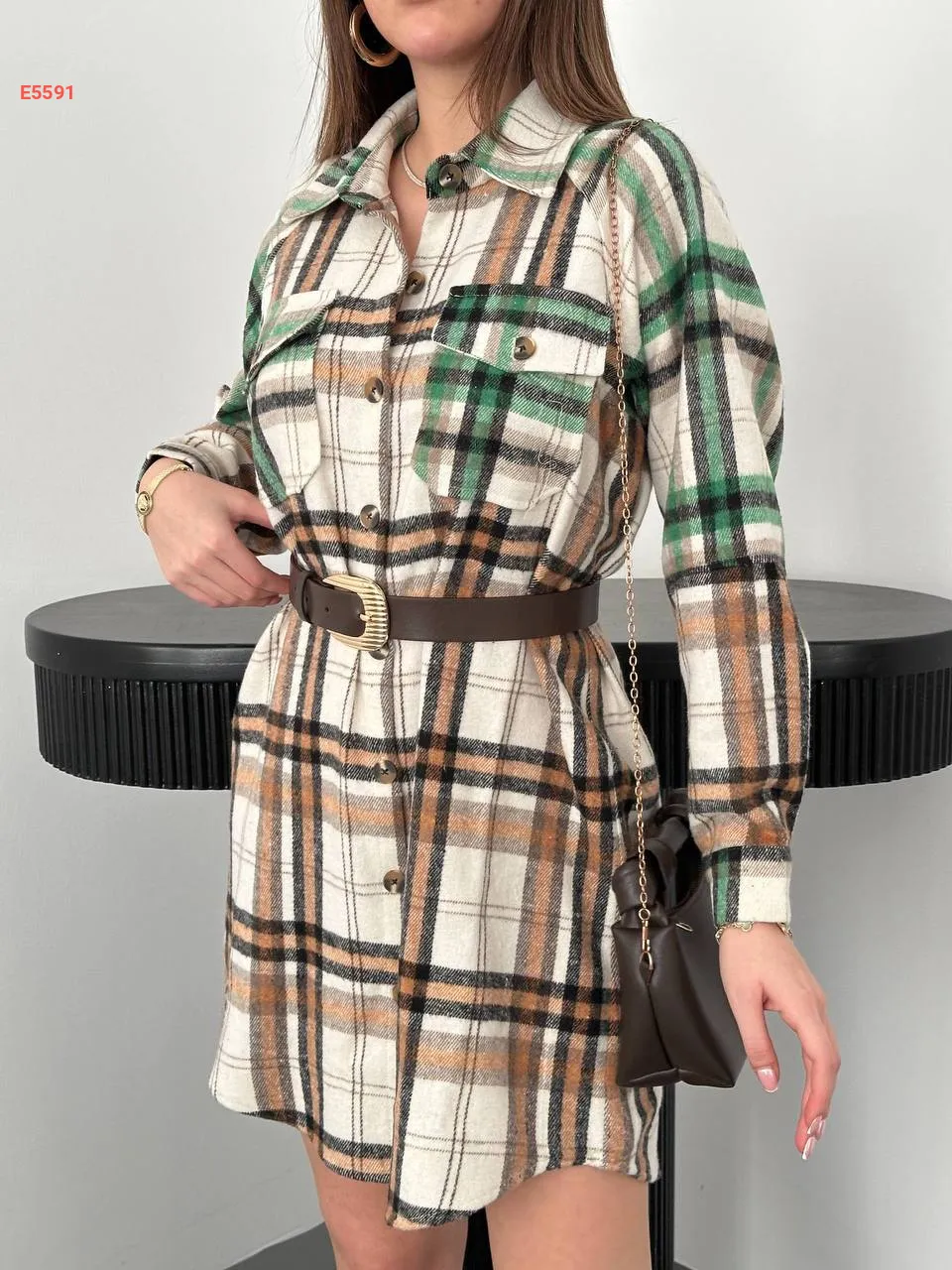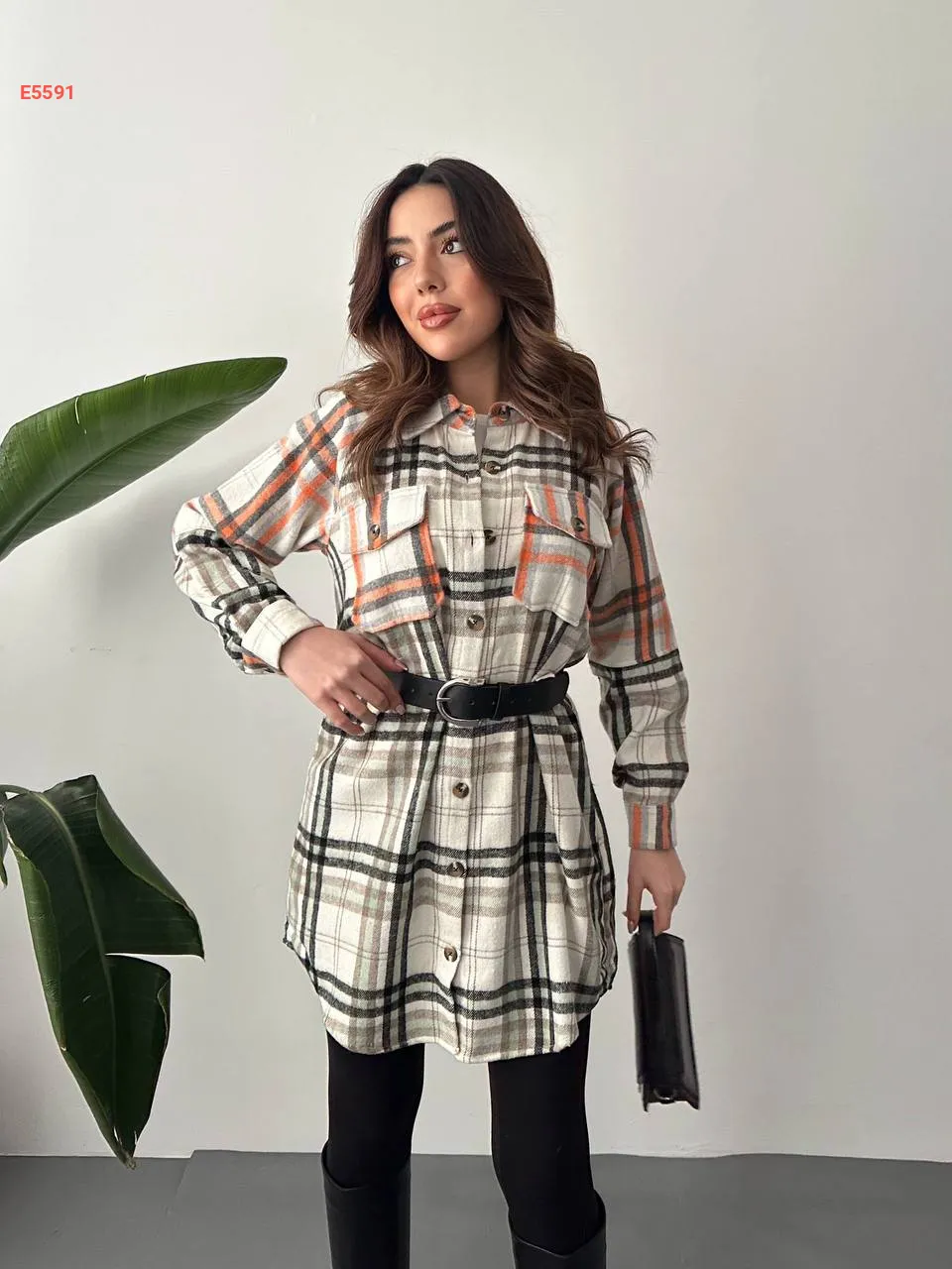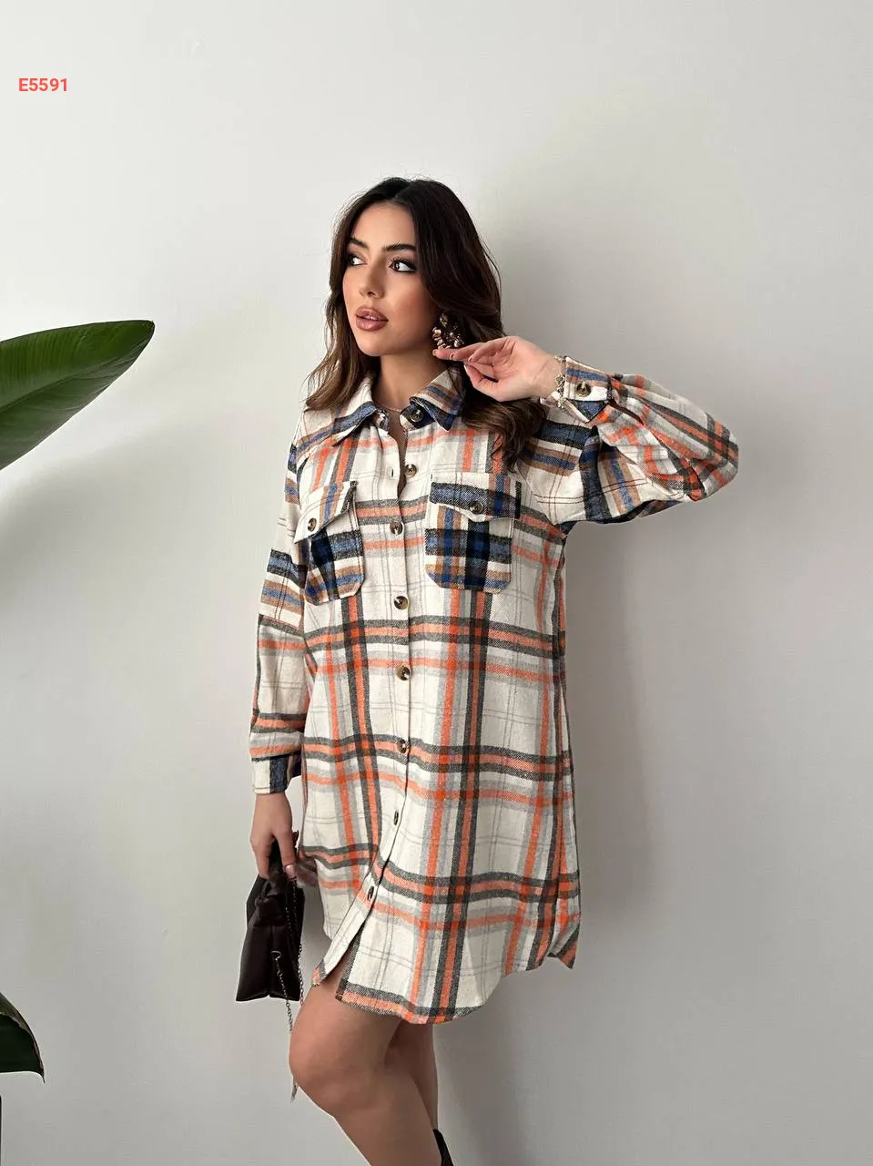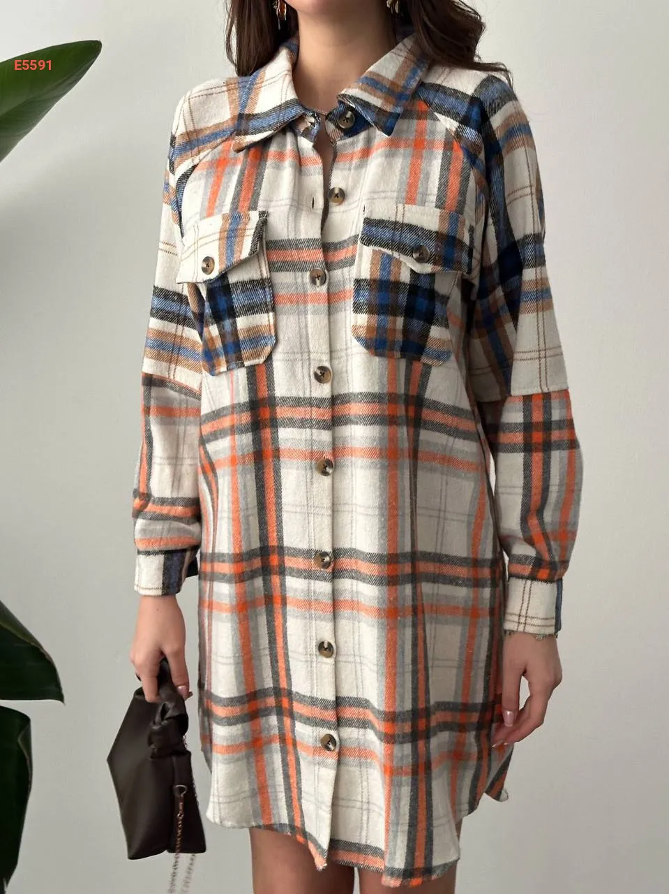 قميص كارو طويل بجيوب