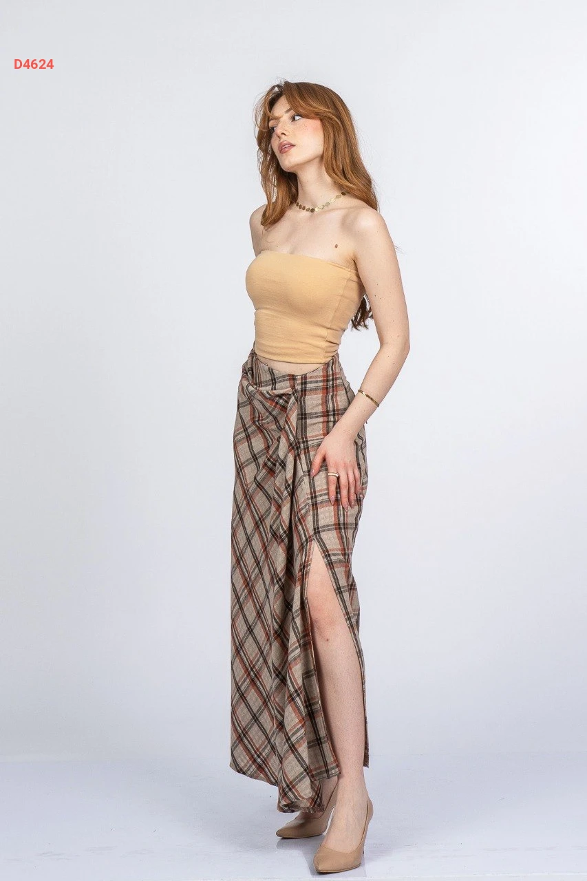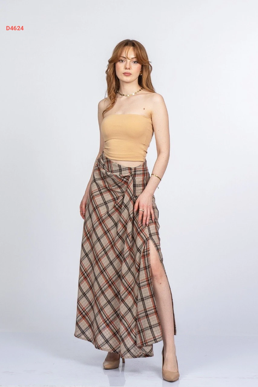 تنورة كارو طويلة بفتحة جانبية