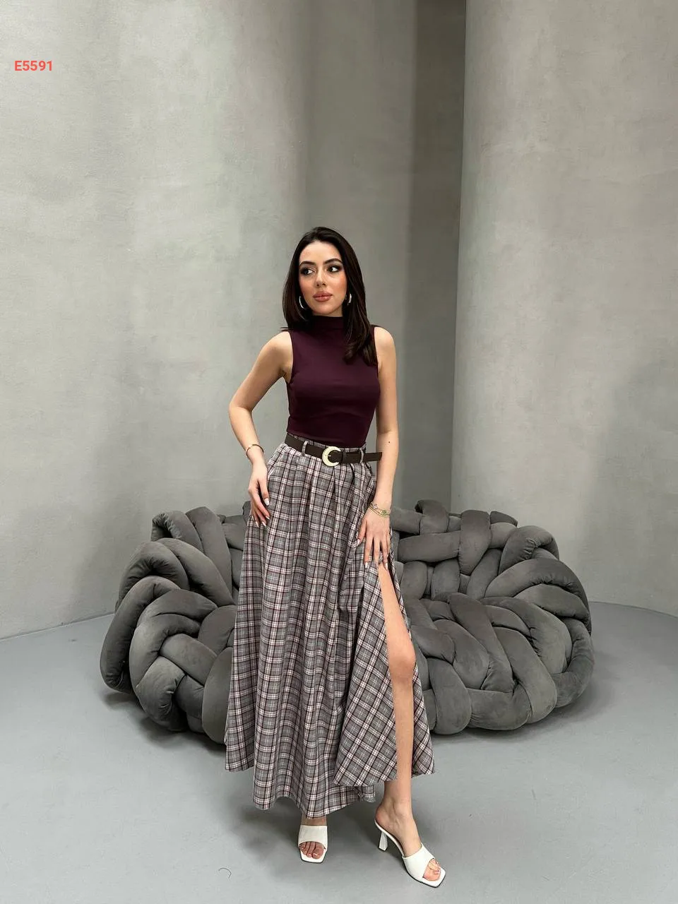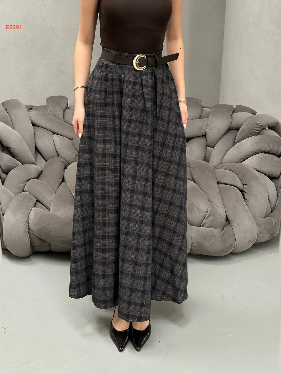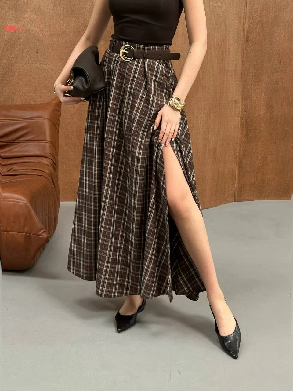تنورة كارو طويلة بفتحة جانبية