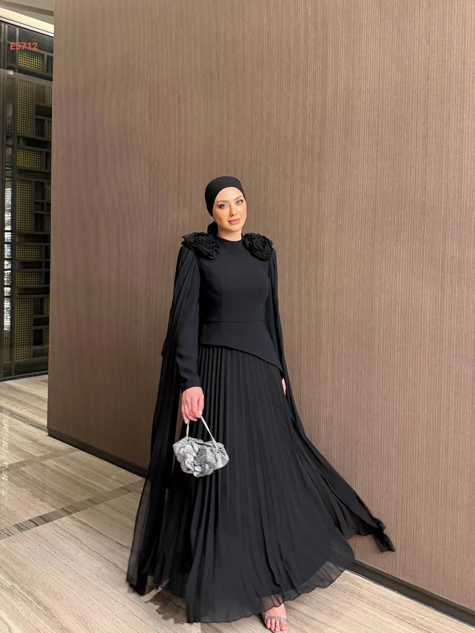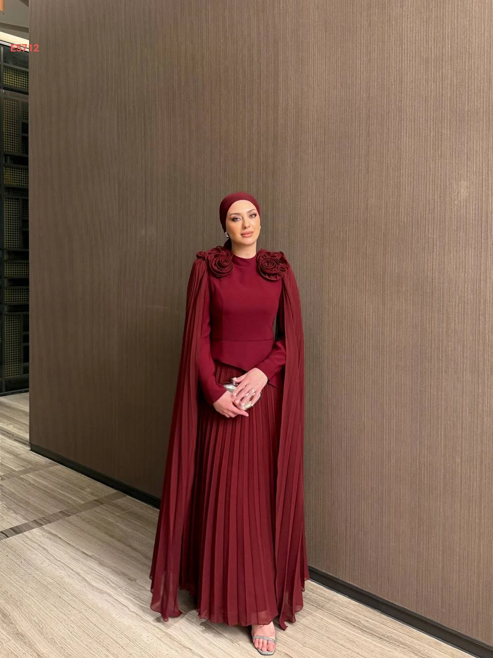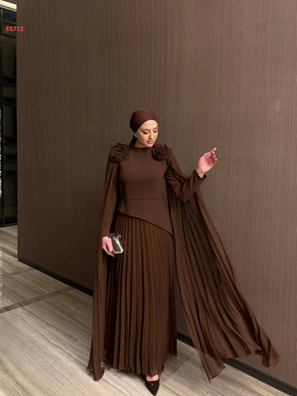فستان طويل شيفون بليسيه مزين ورد