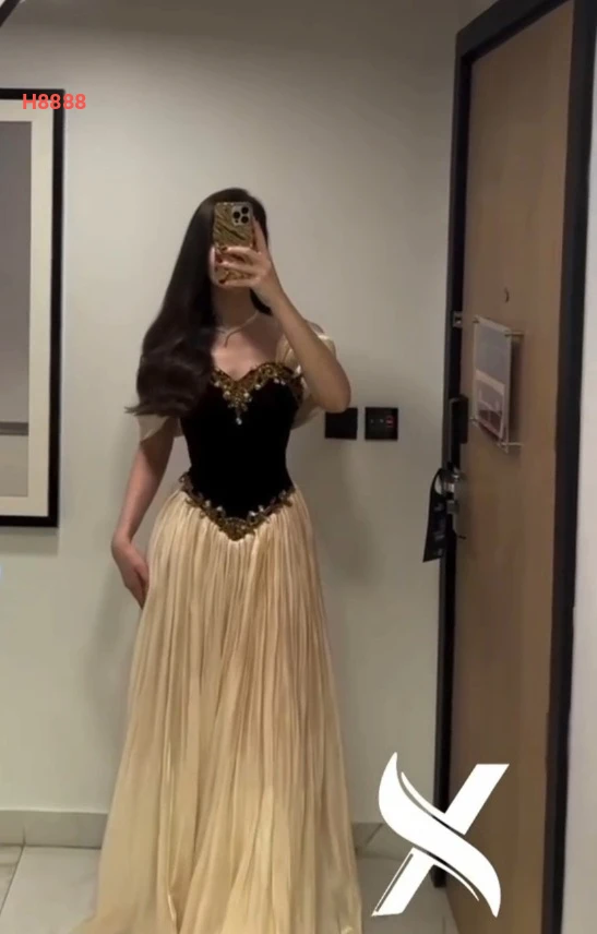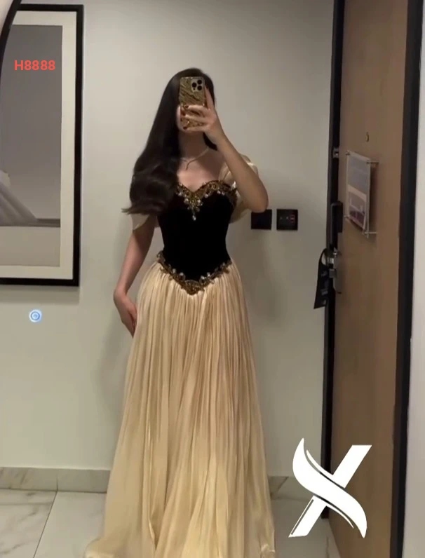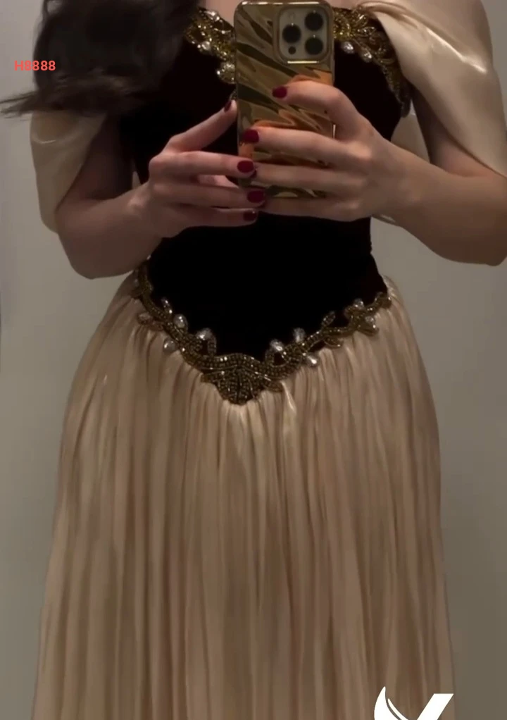 فستان طويل شيفون بليسيه مع تطريز