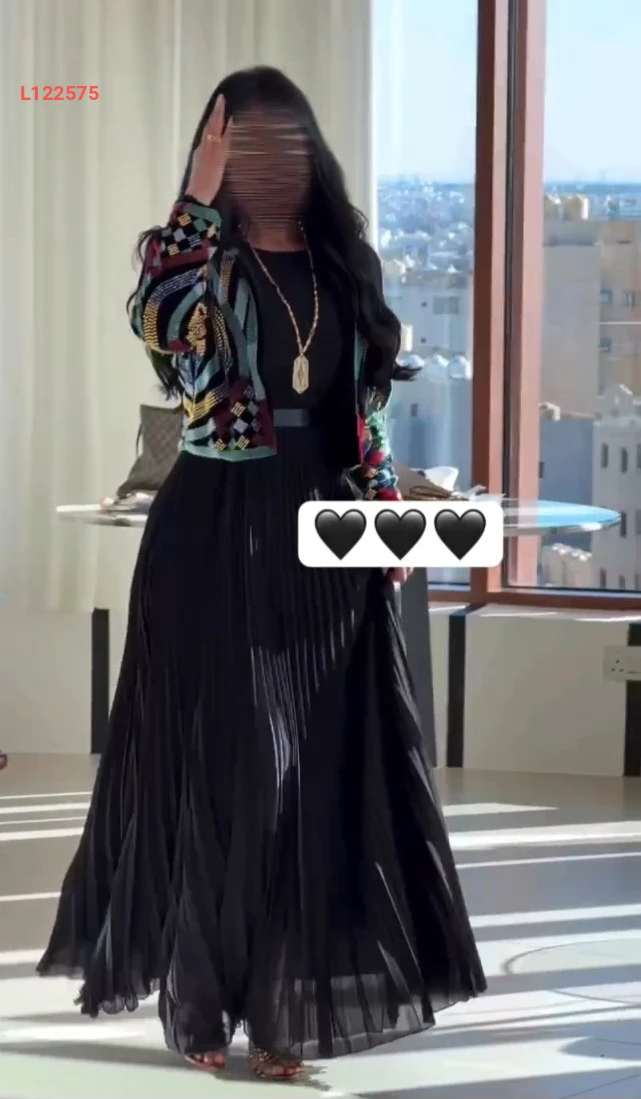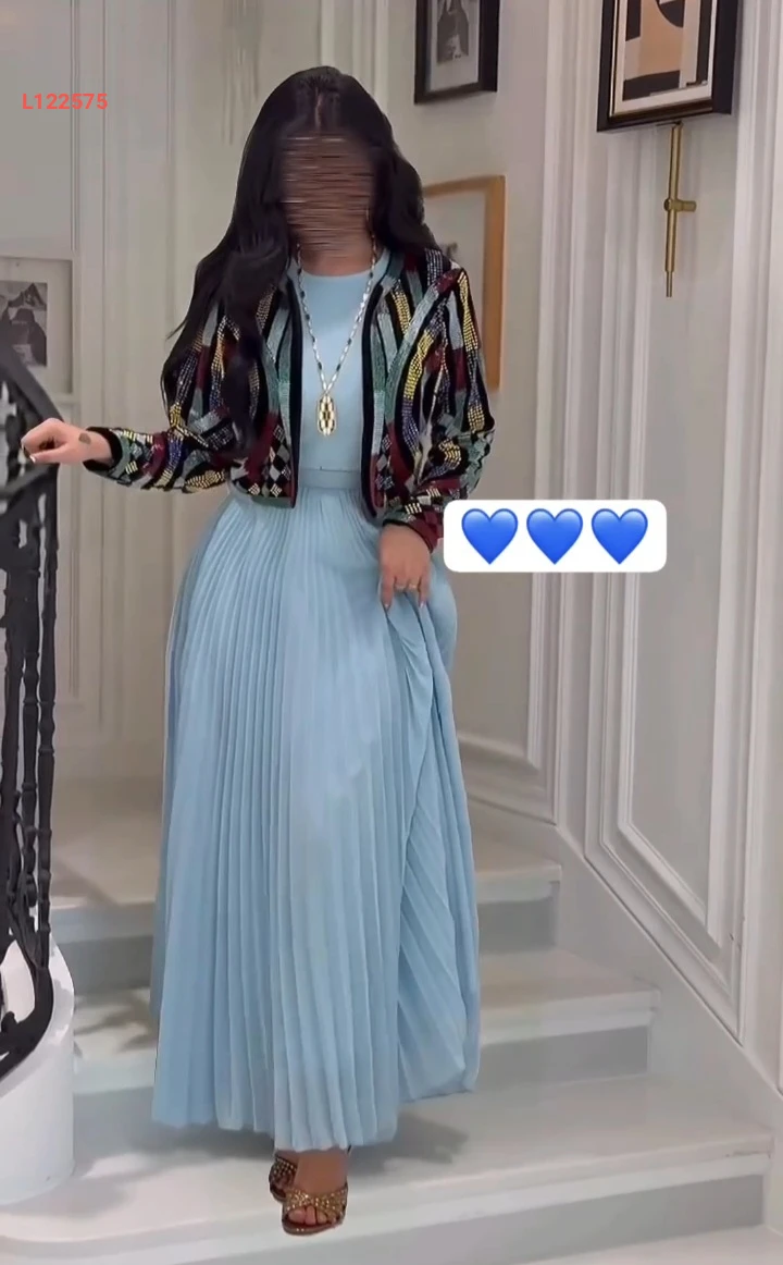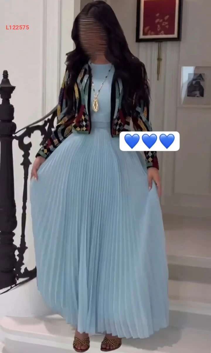 فستان طويل بليسيه مع جاكيت مطرز