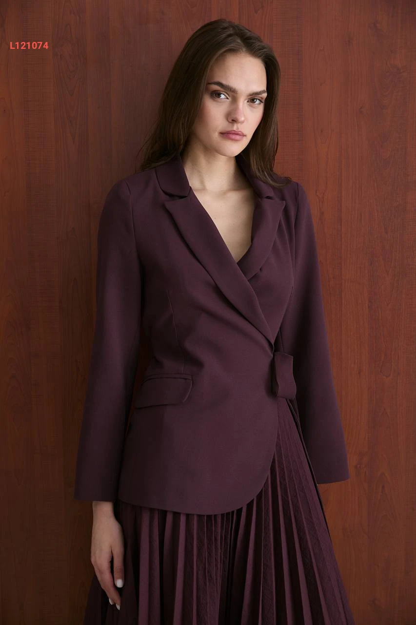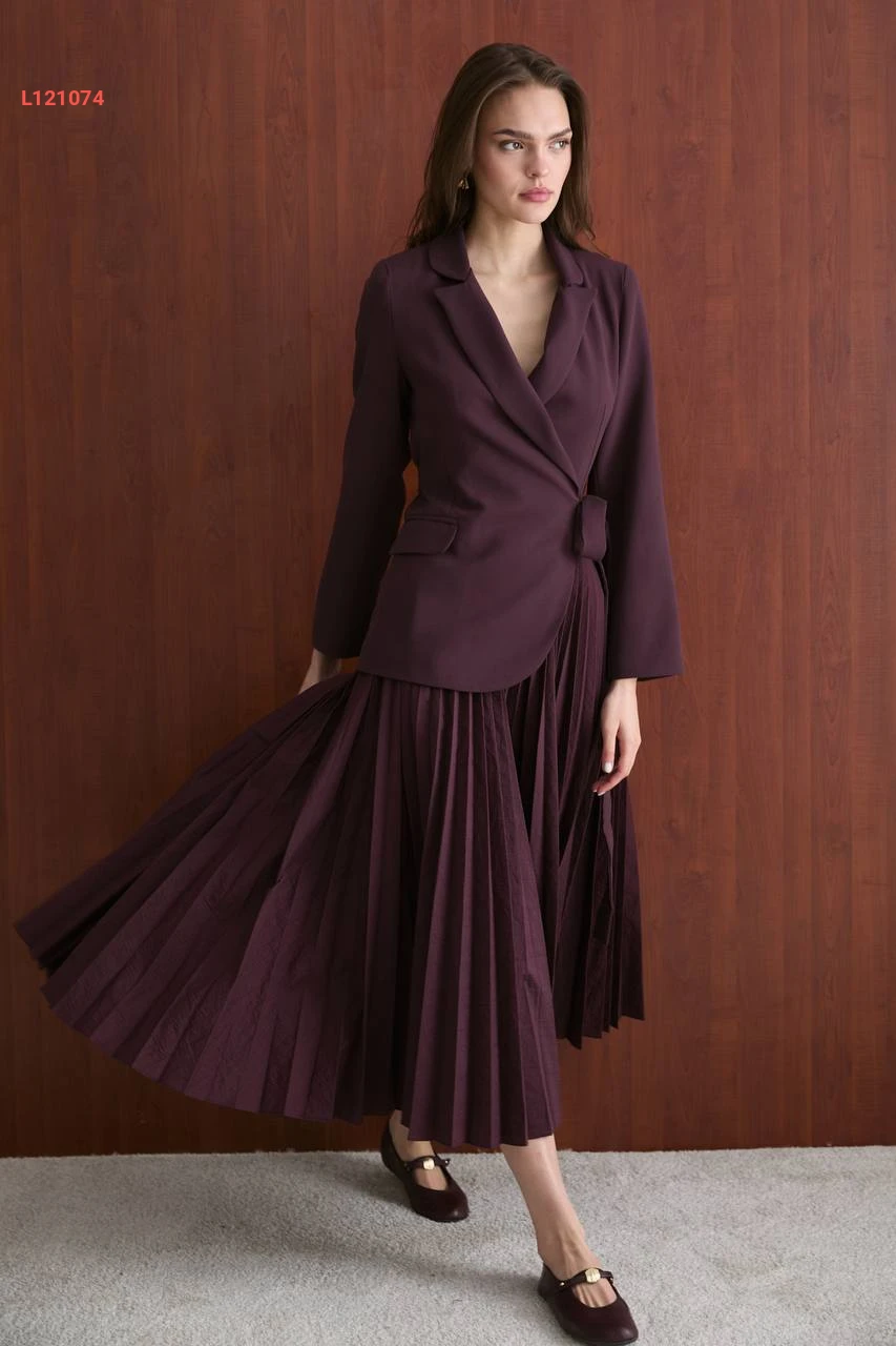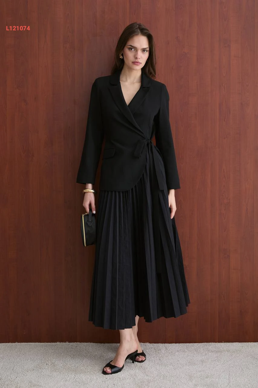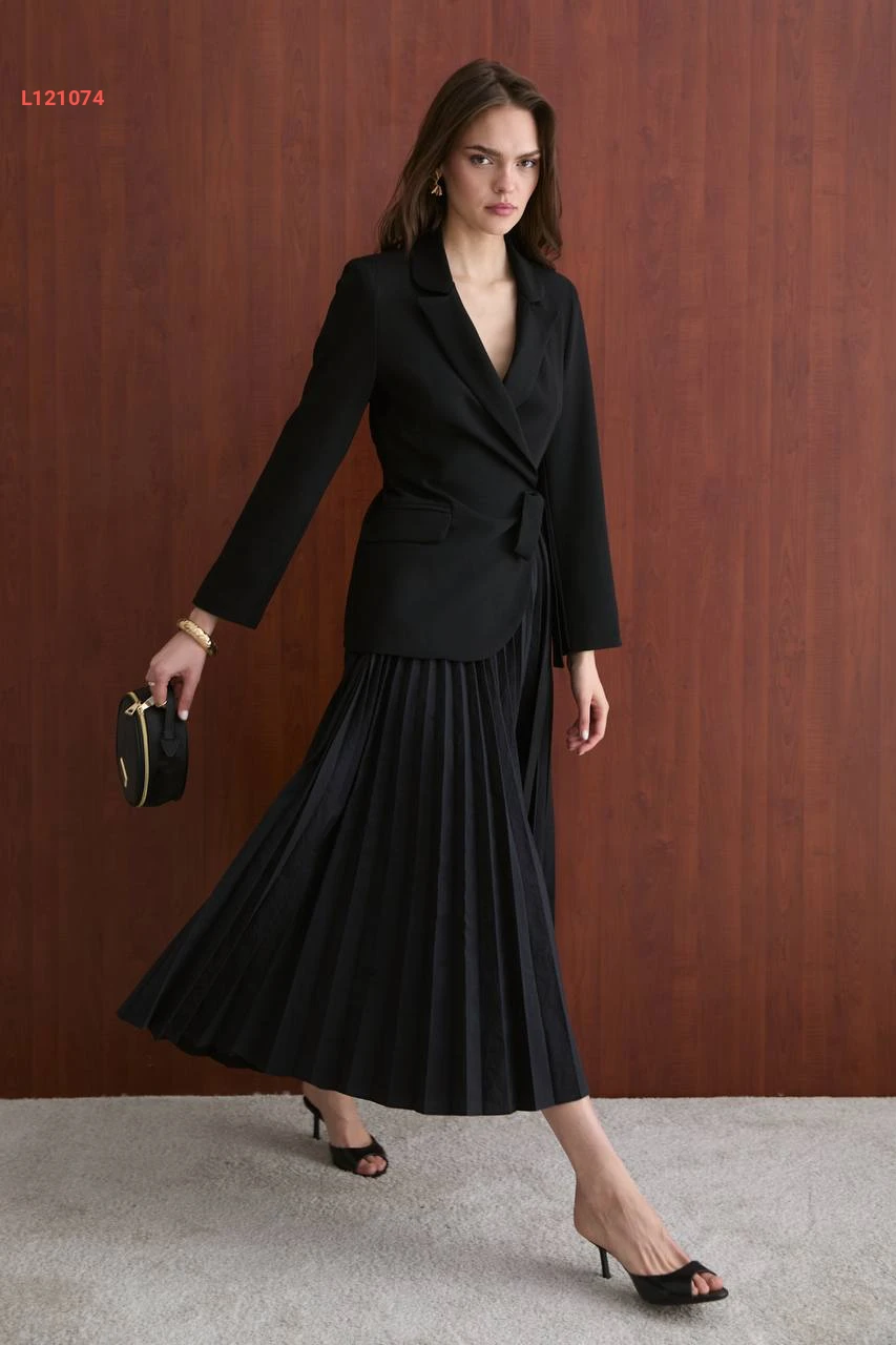 فستان طويل بليسيه مع تفاصيل بليزر
