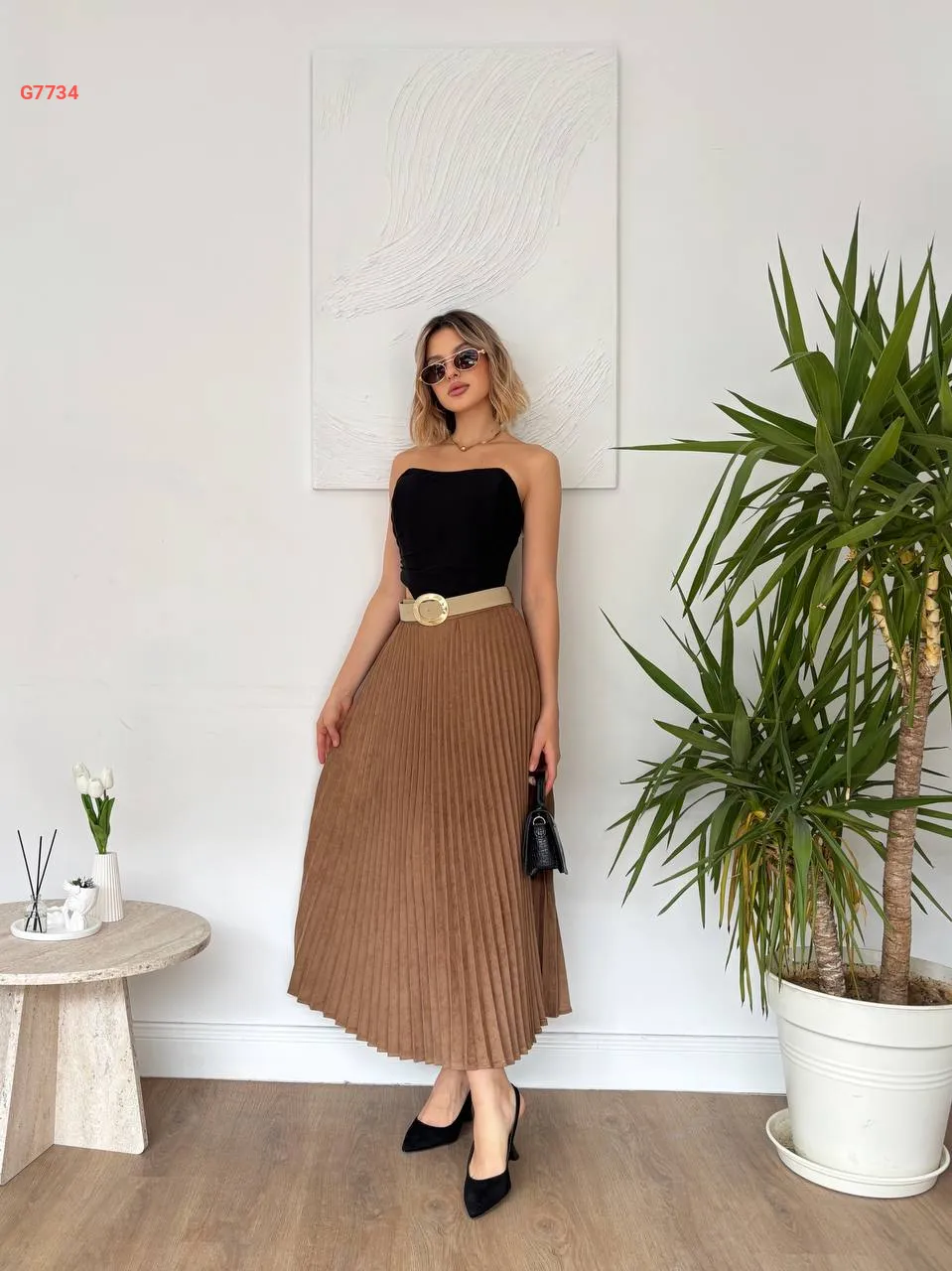 تنورة طويلة بربطة جانبية