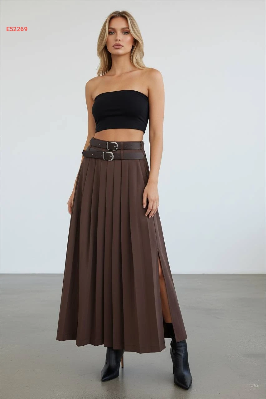 تنورة طويلة مكسرة بفتحة جانبية