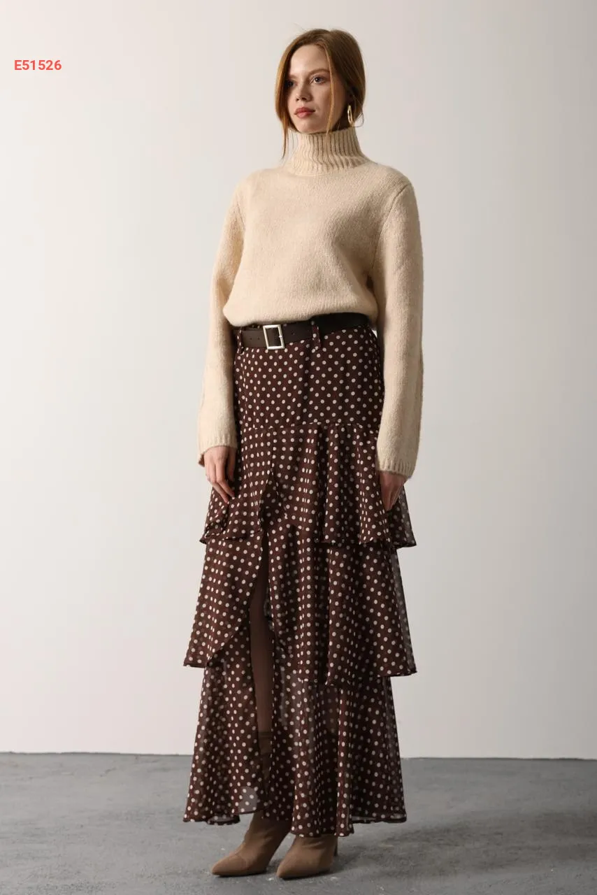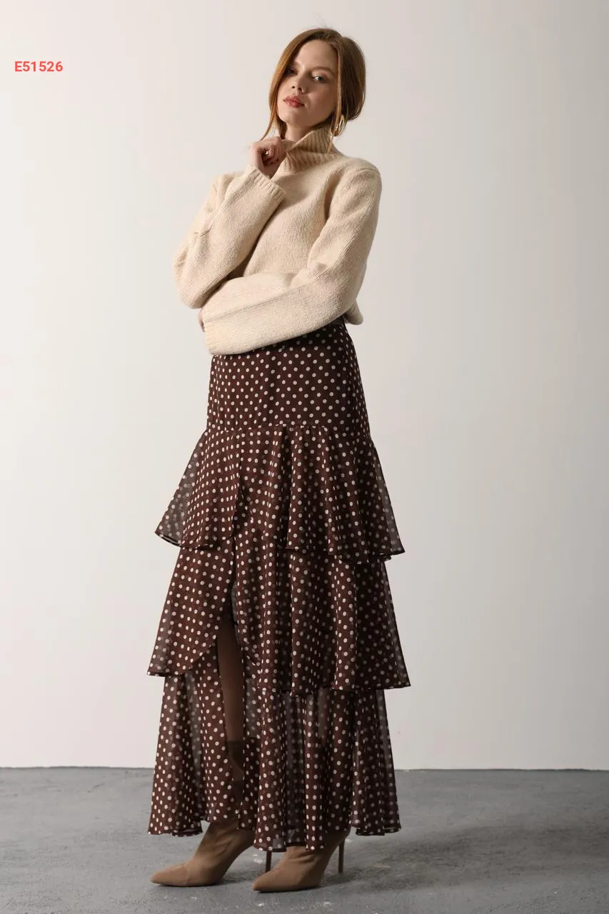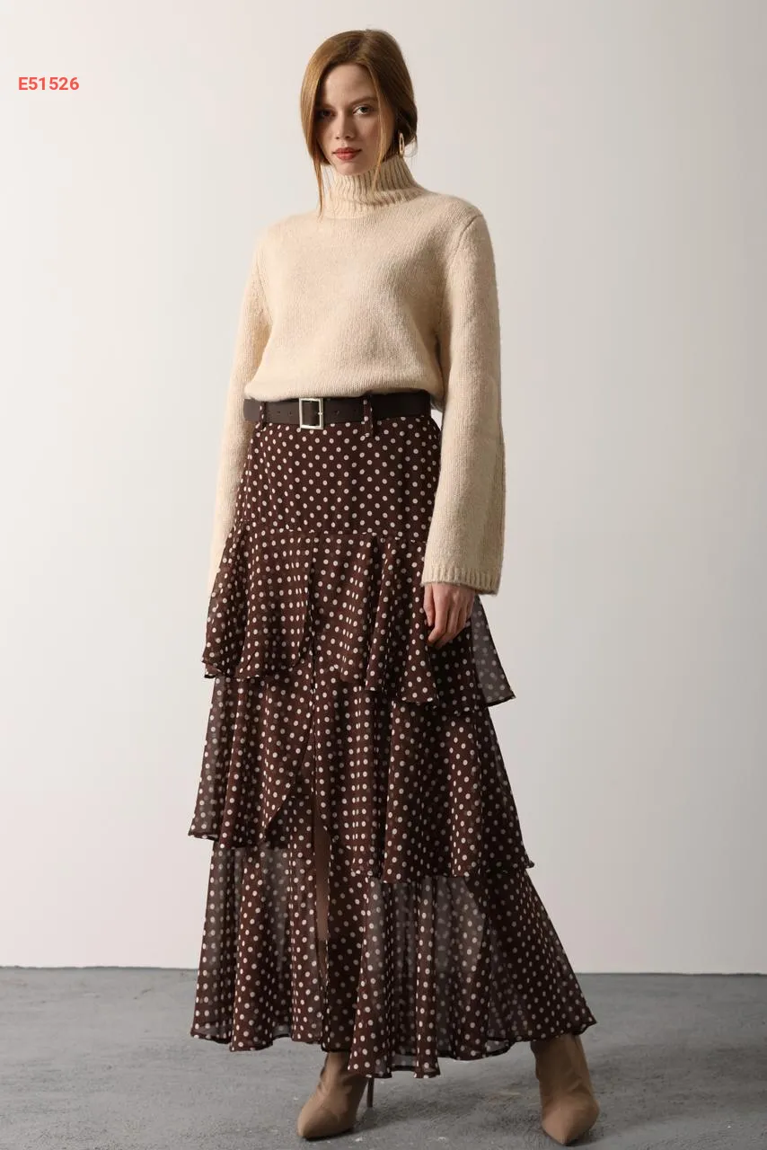 تنورة طويلة شيفون كشكش منقطة