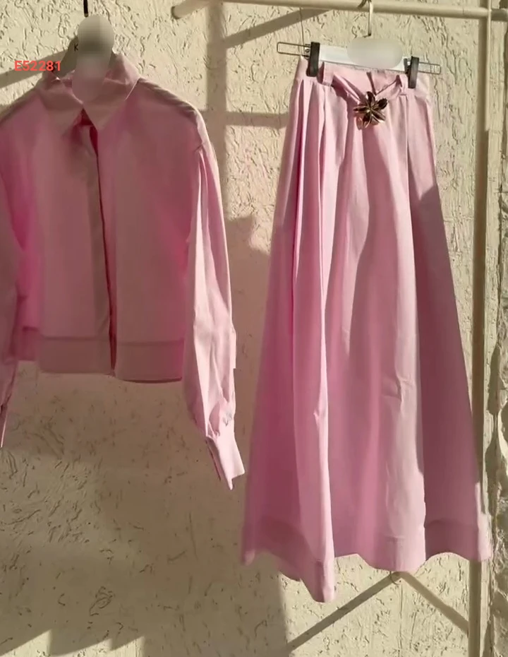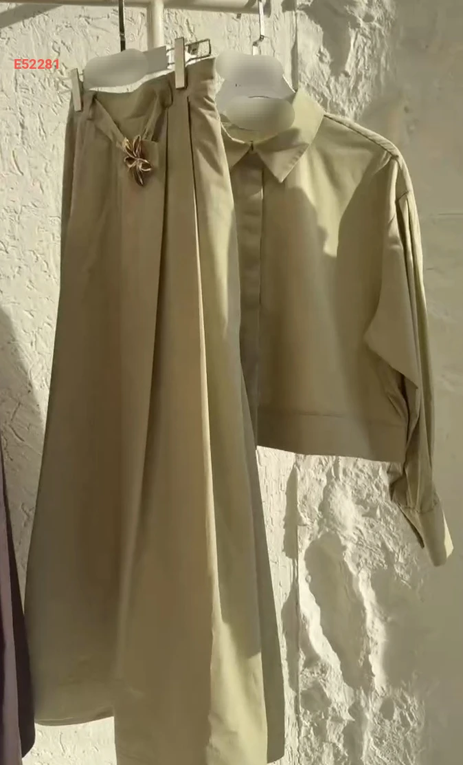 طقم تنورة طويل بوبلين مع بروش دهبي