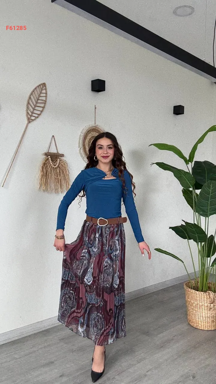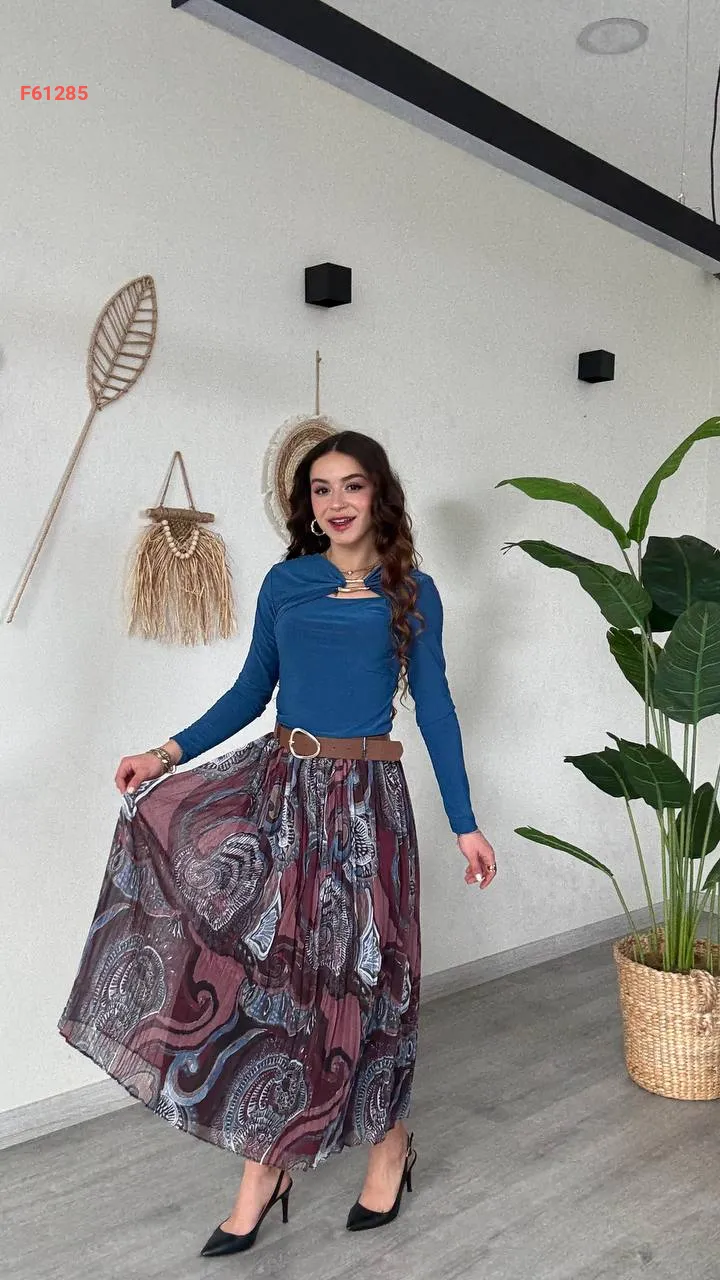 تنورة طويلة شيفون معرقة