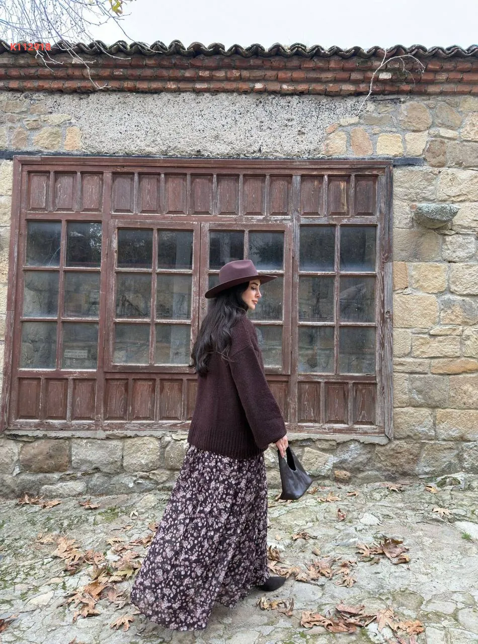 تنورة طويلة شيفون منقوشة