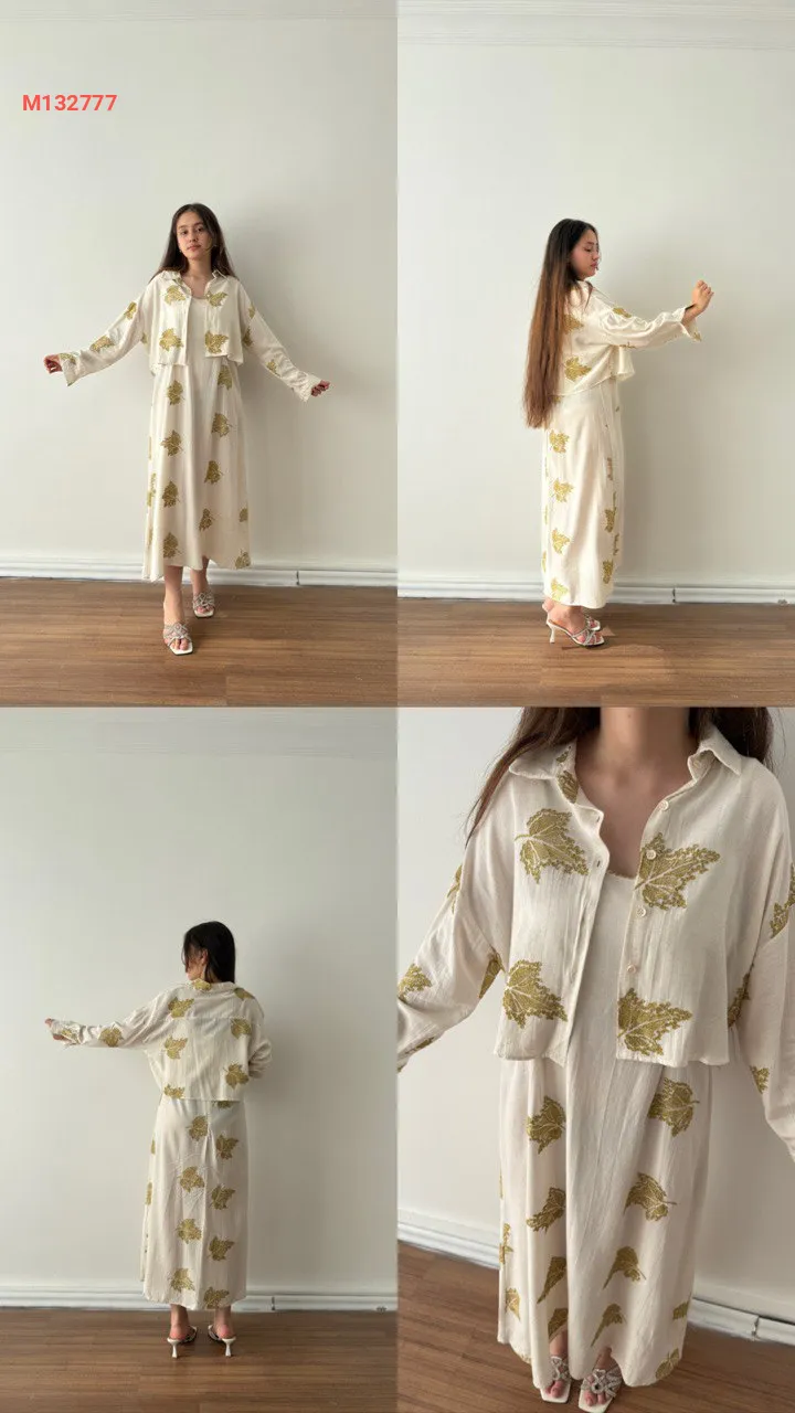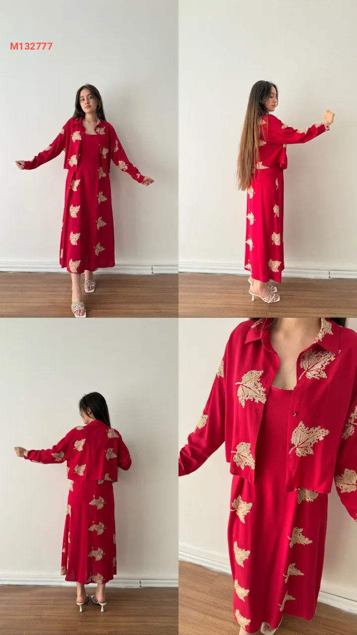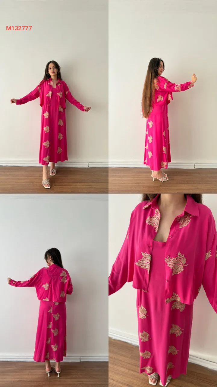 فستان طويل منقوش مع جاكيت