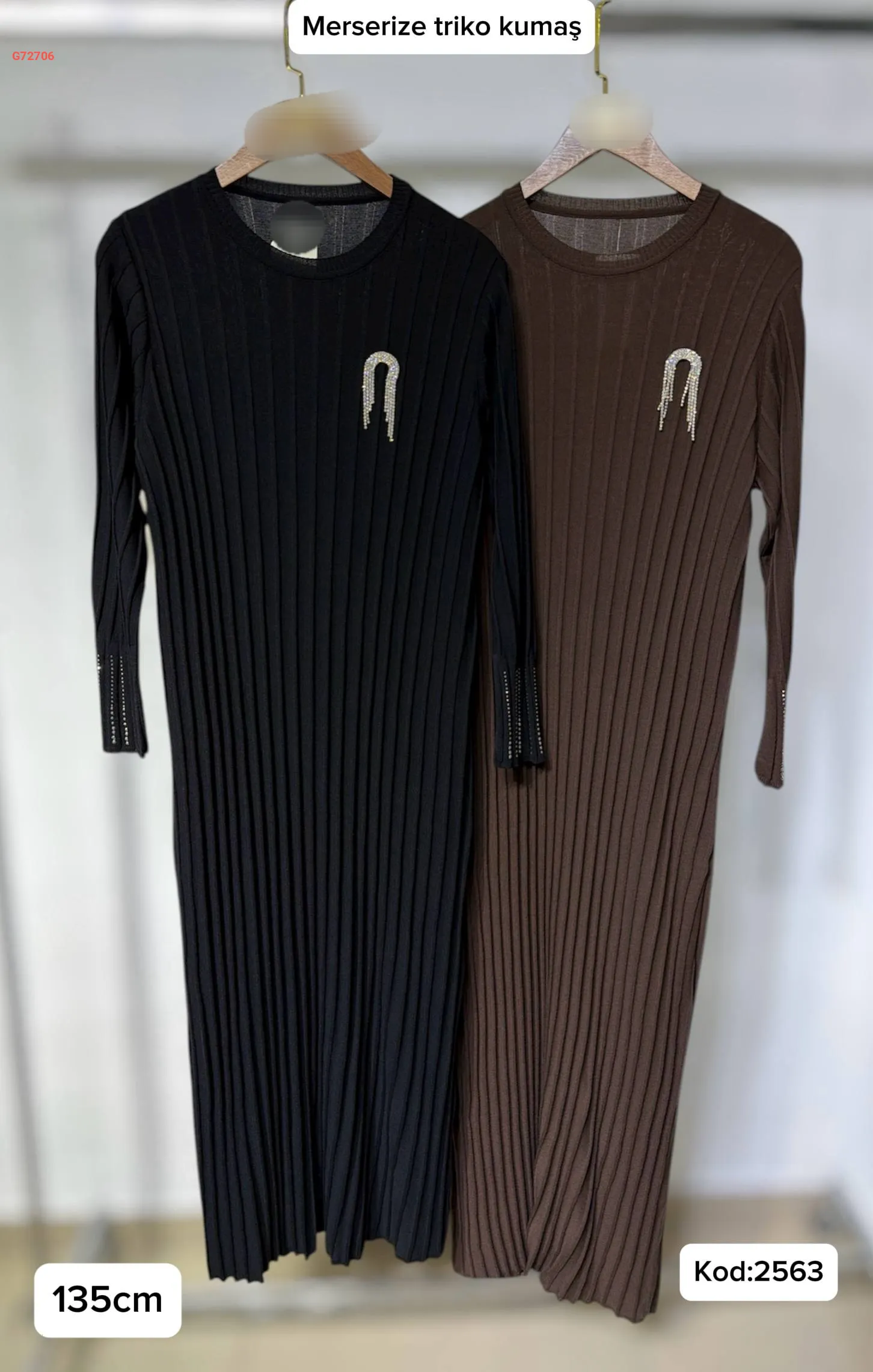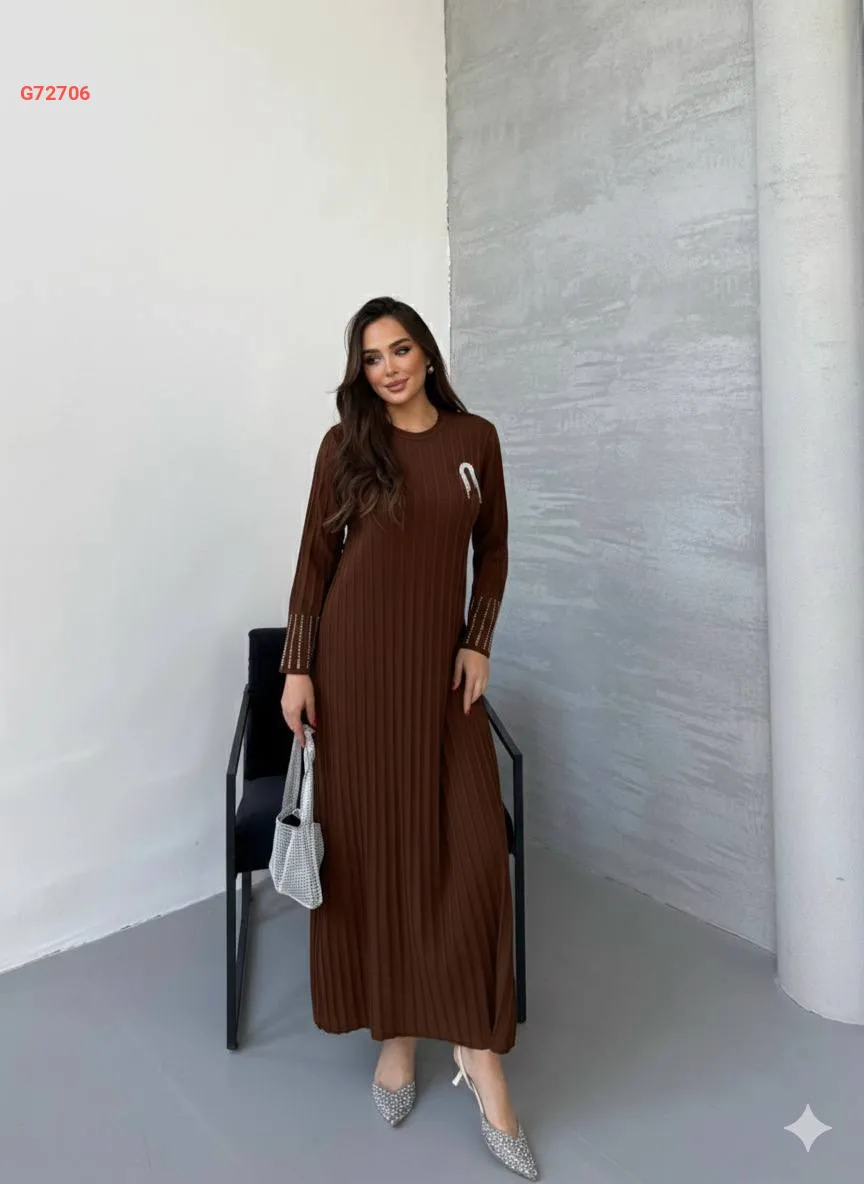 فستان تريكو طويل محزز مع بروش