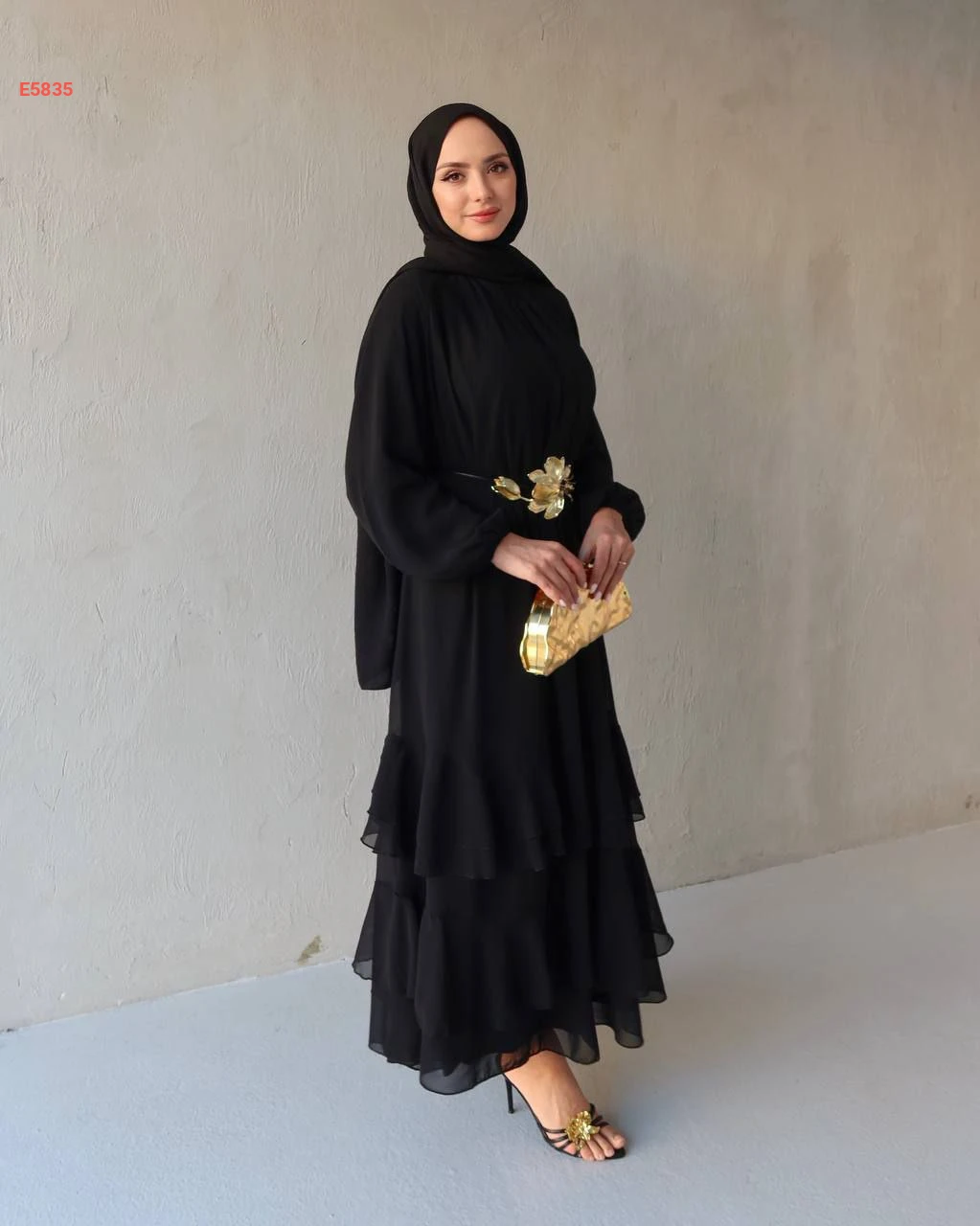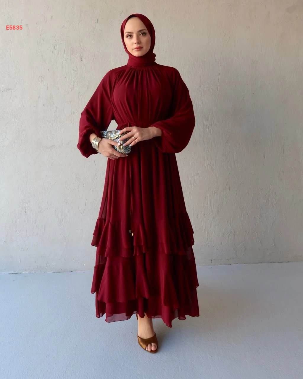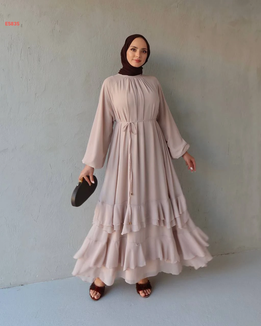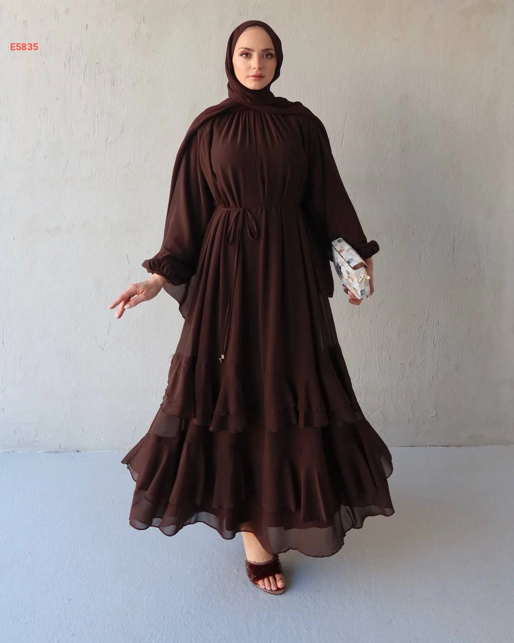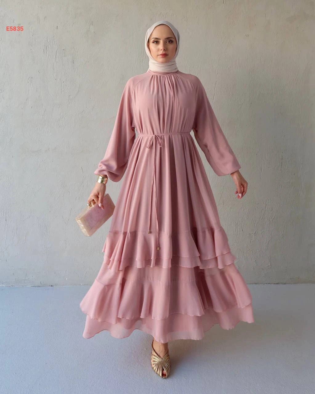 فستان طويل شيفون كشكش