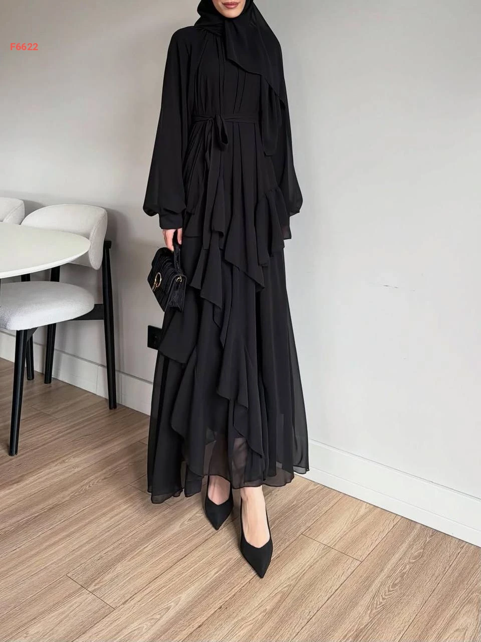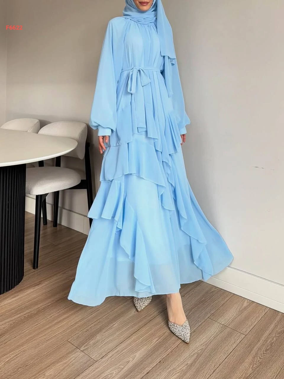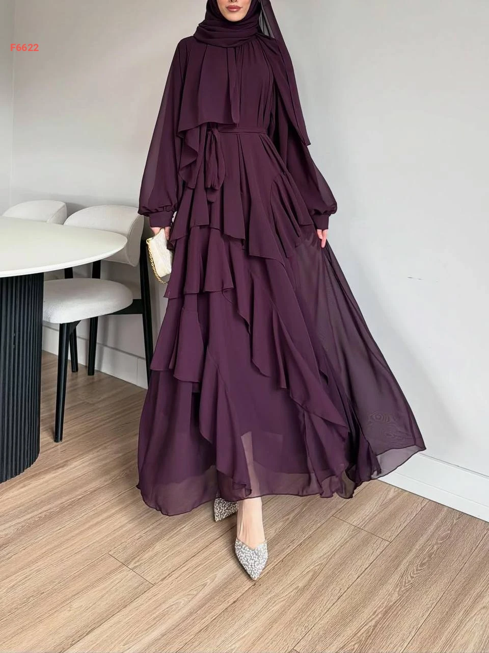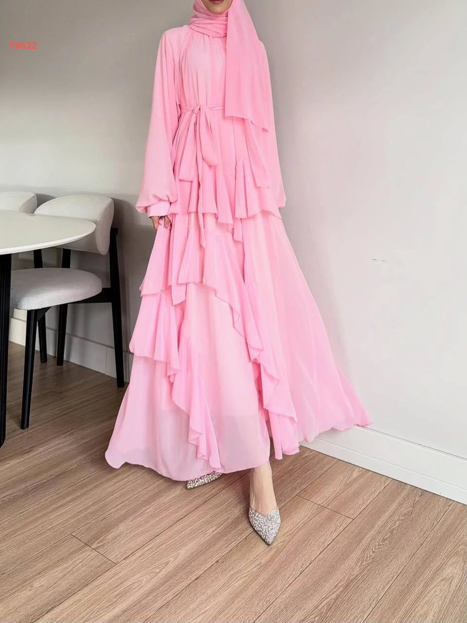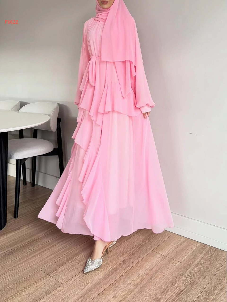 فستان طويل شيفون مكشكش