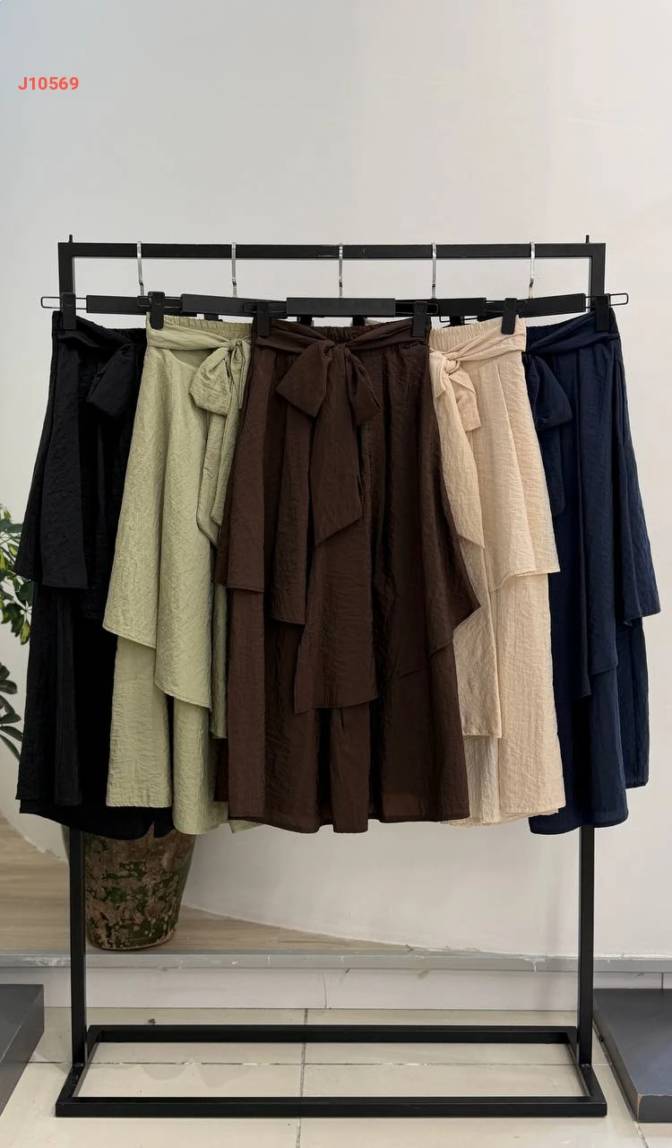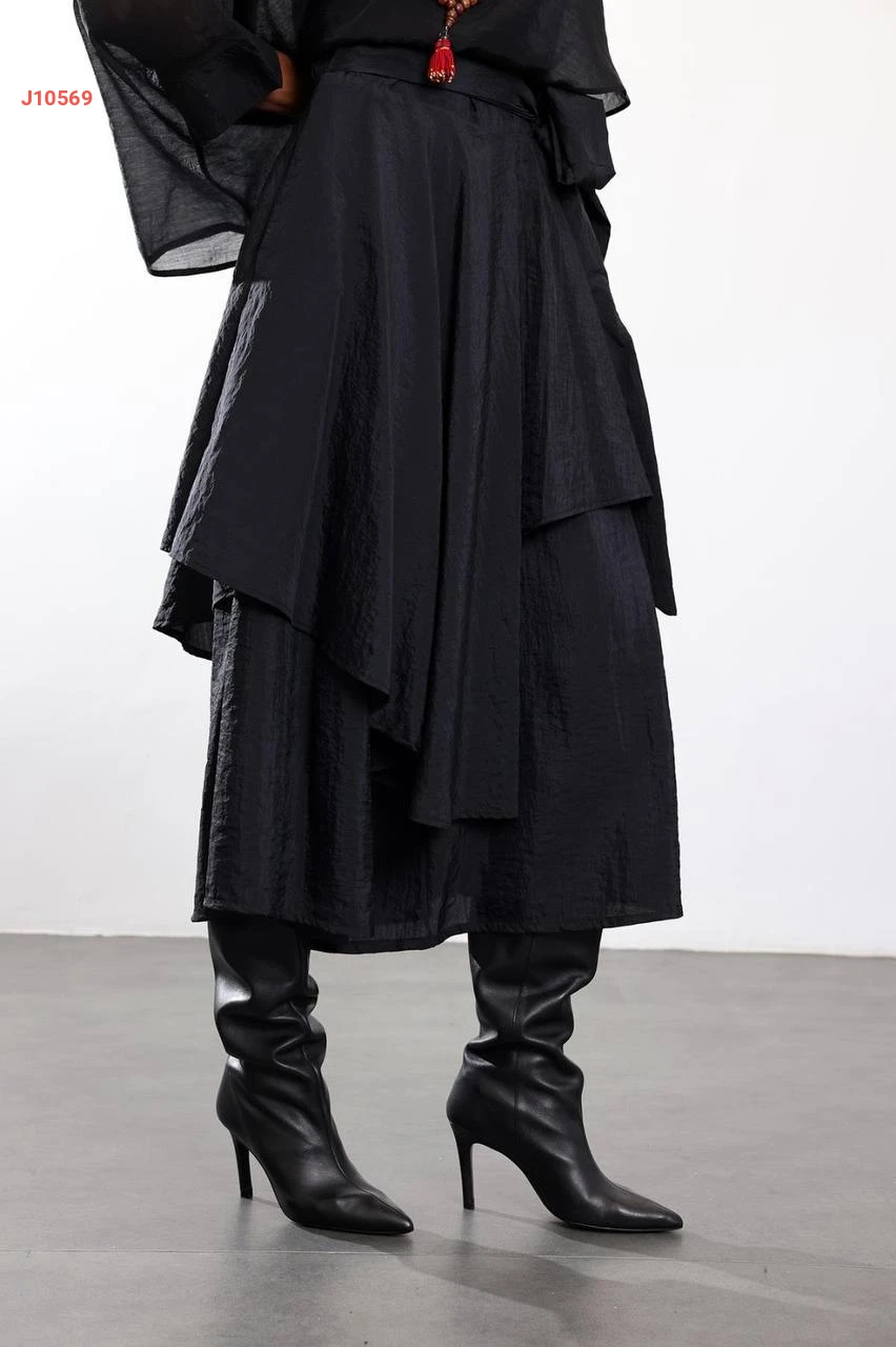 تنورة طويلة كشكش مع زنار ربط
