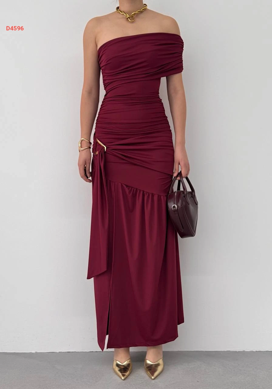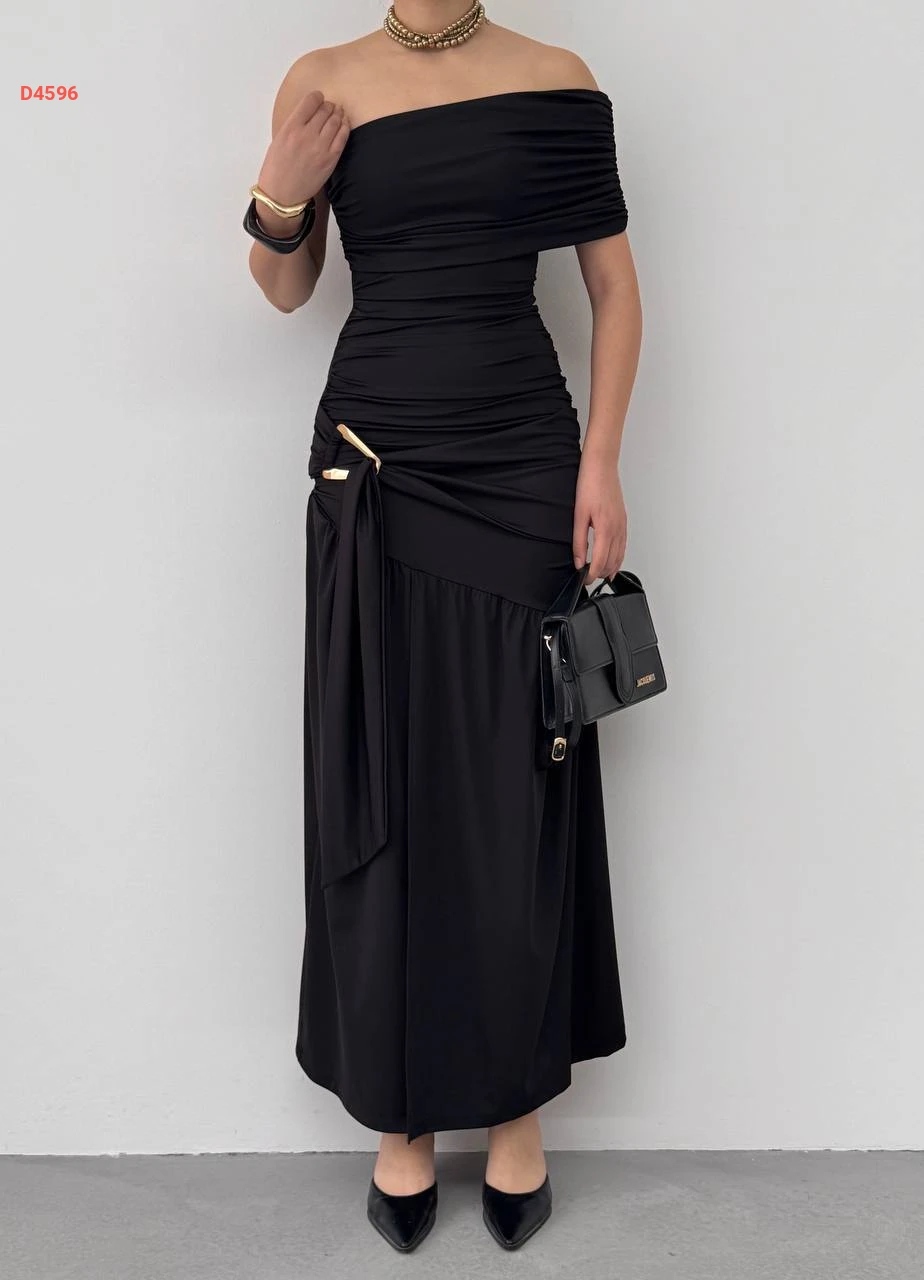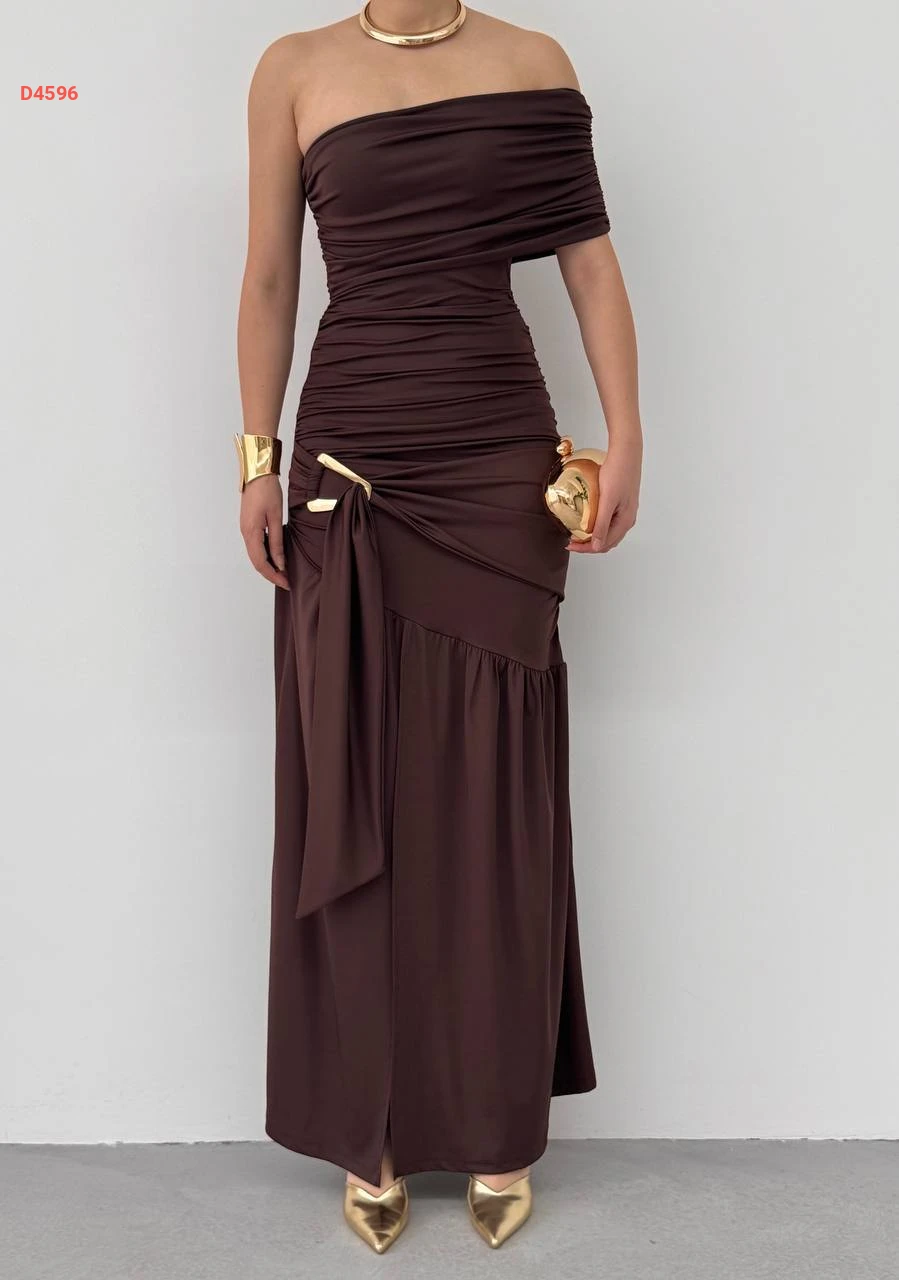 فستان طويل ساندي مجمع بإبزيم