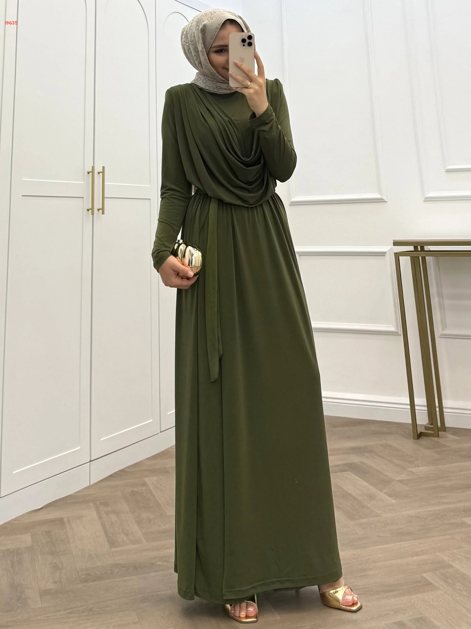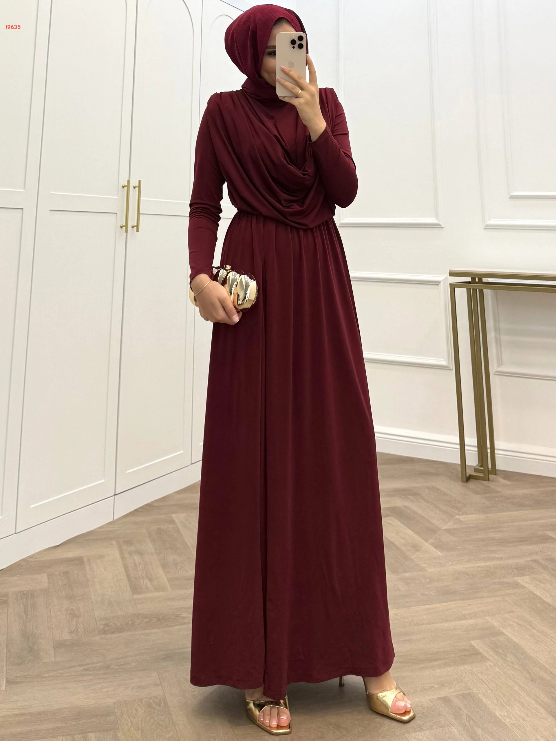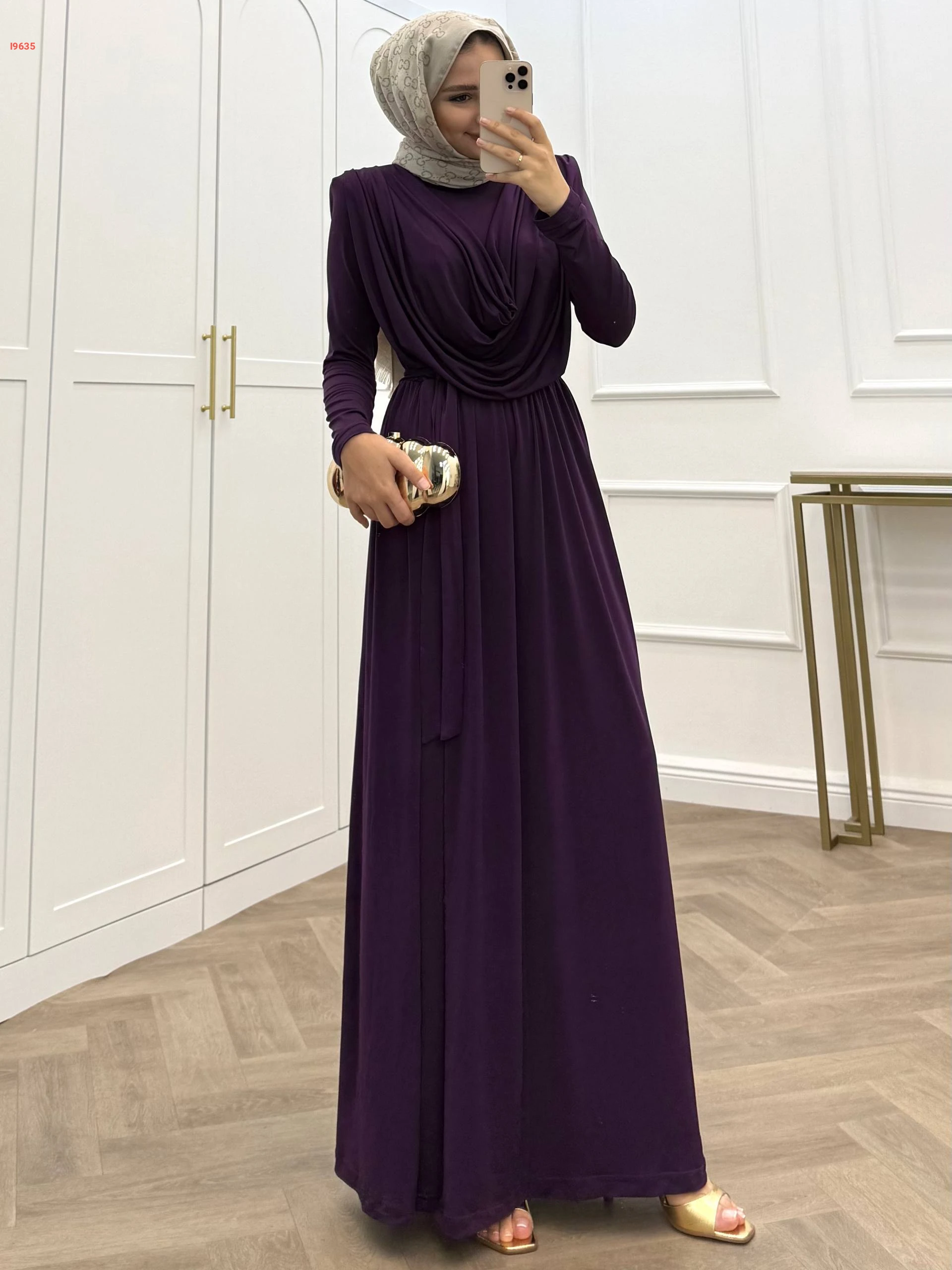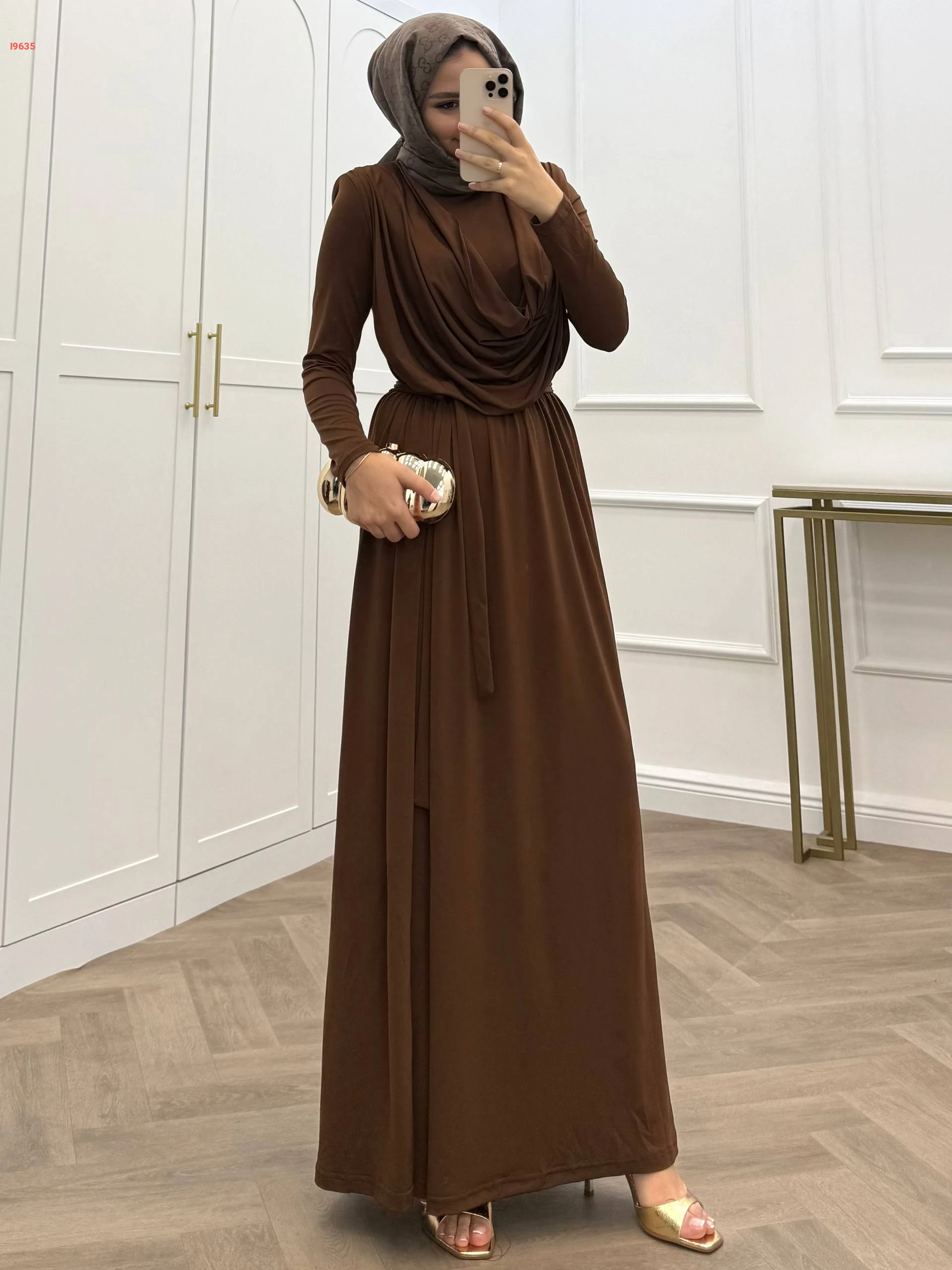 فستان طويل ساندي بتفاصيل مجمعة