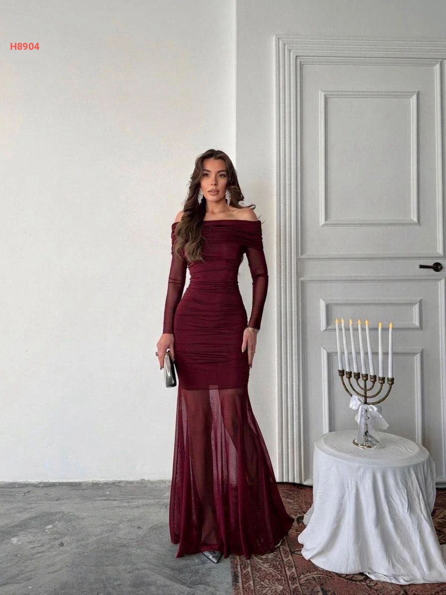 فستان طويل ساندي مجمع وتول