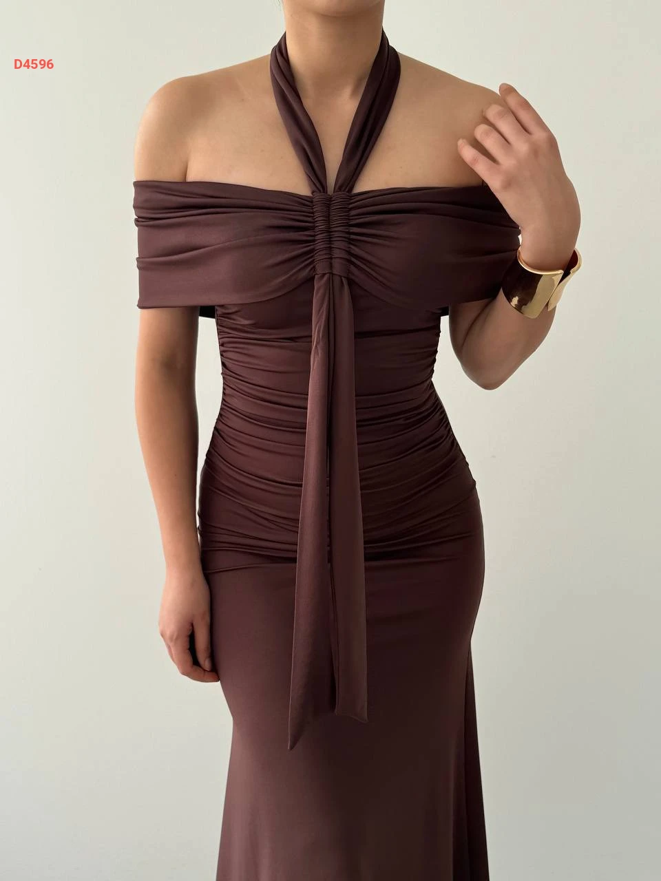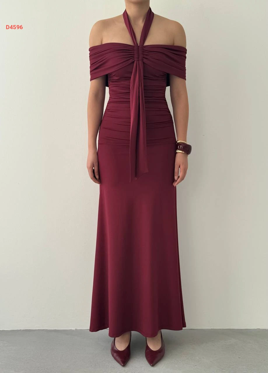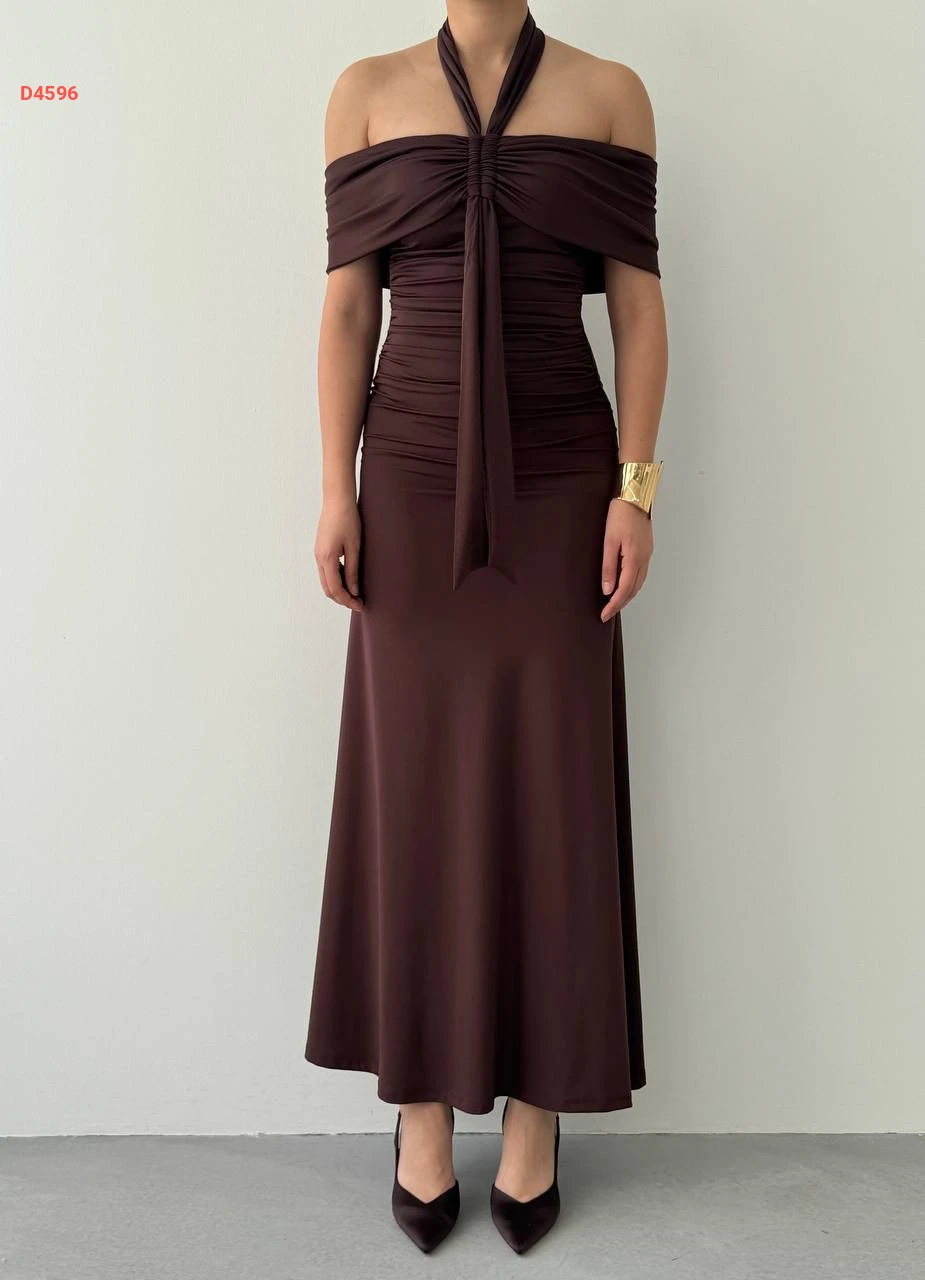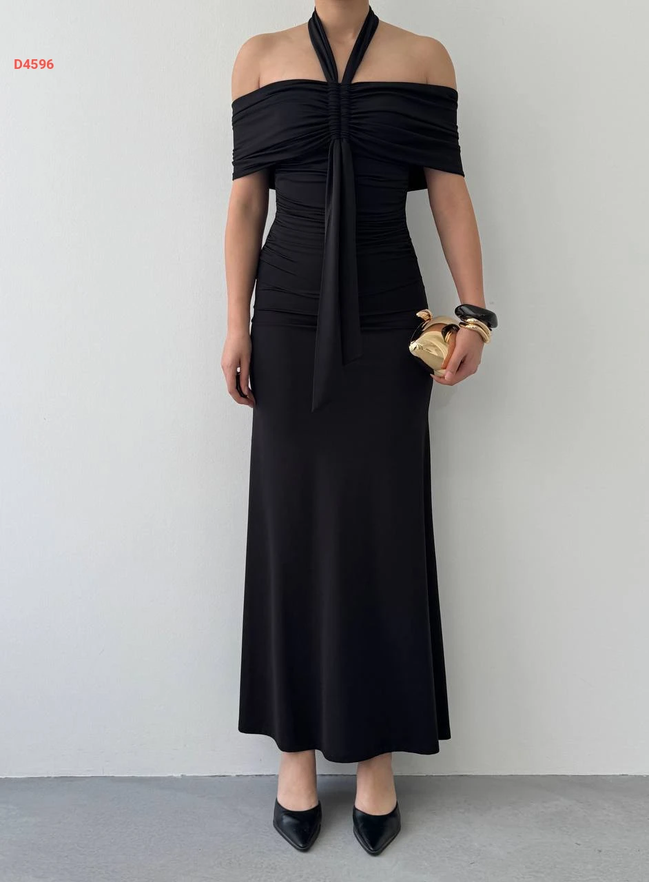 فستان طويل ساندي مجمع مكشوف الأكتاف