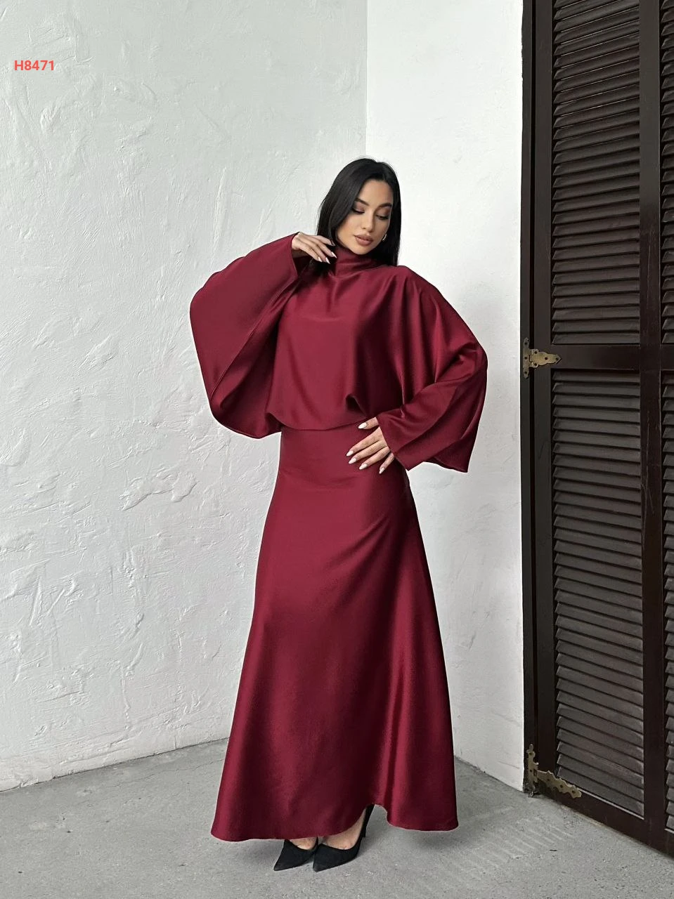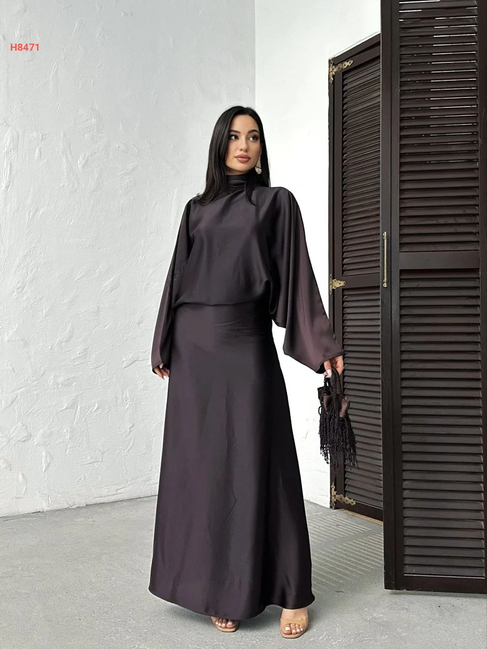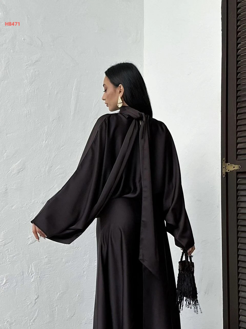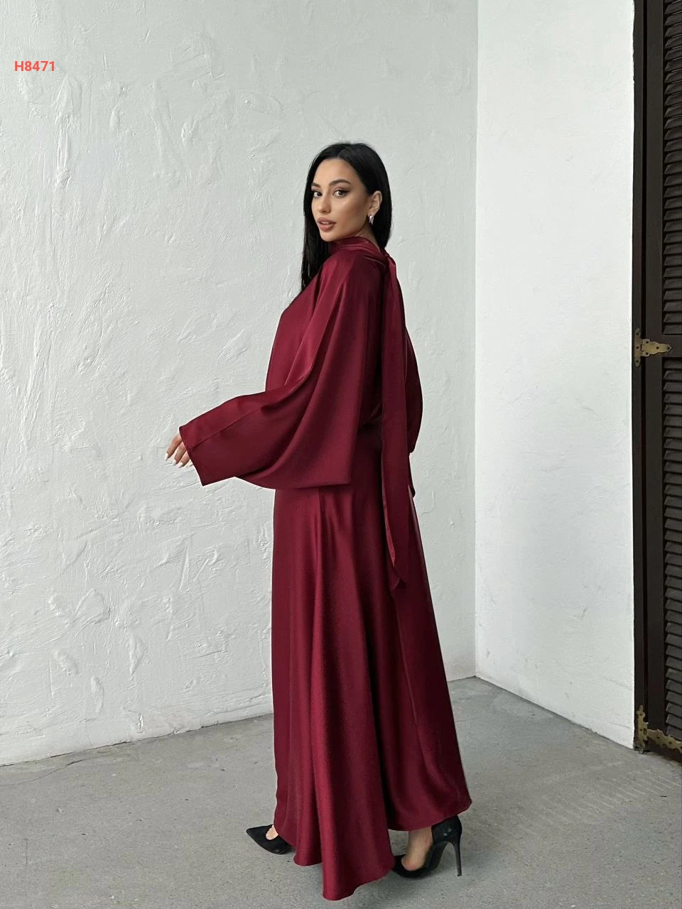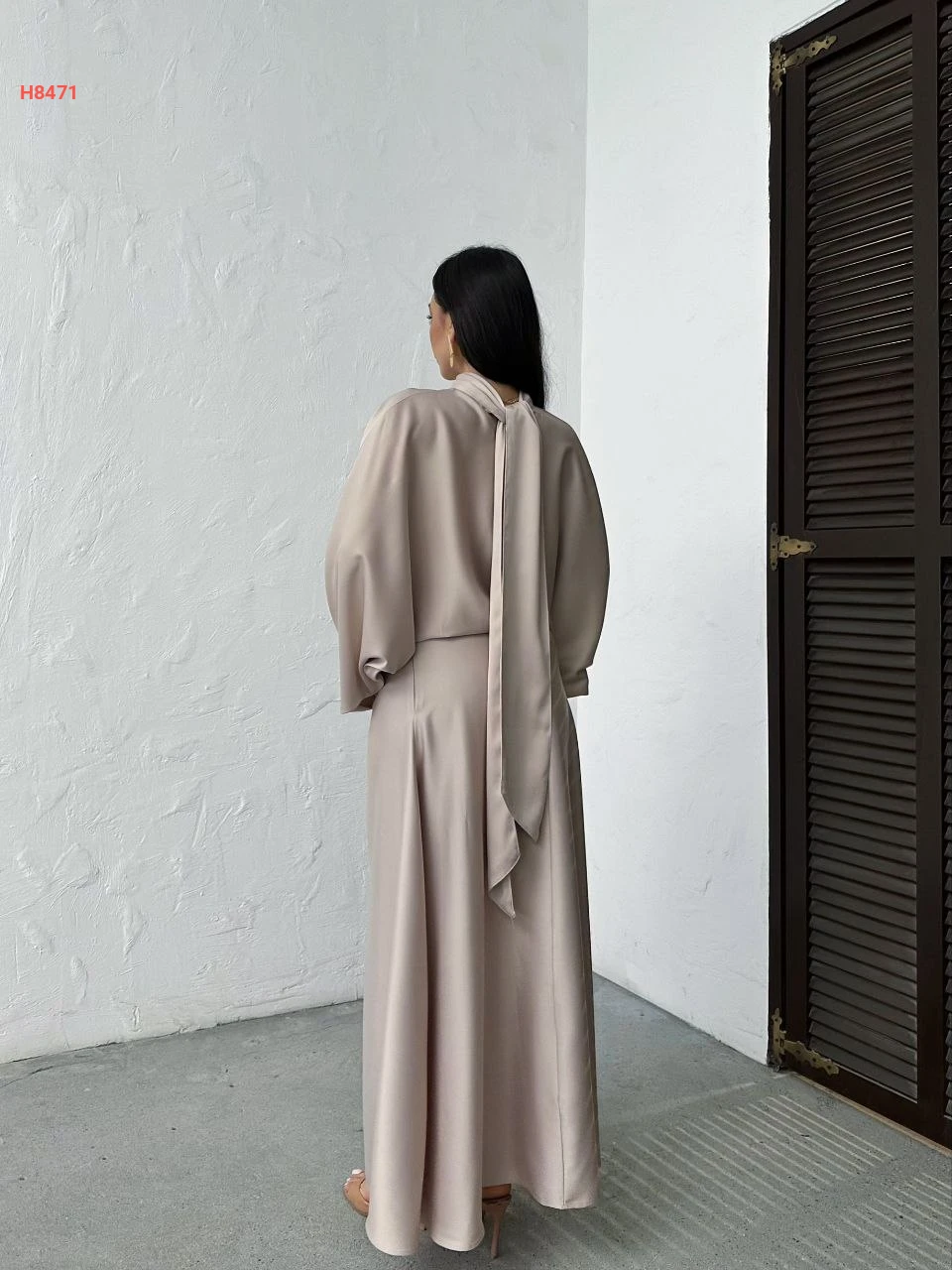 فستان طويل ساتان بربطة خلفية عالرقبة