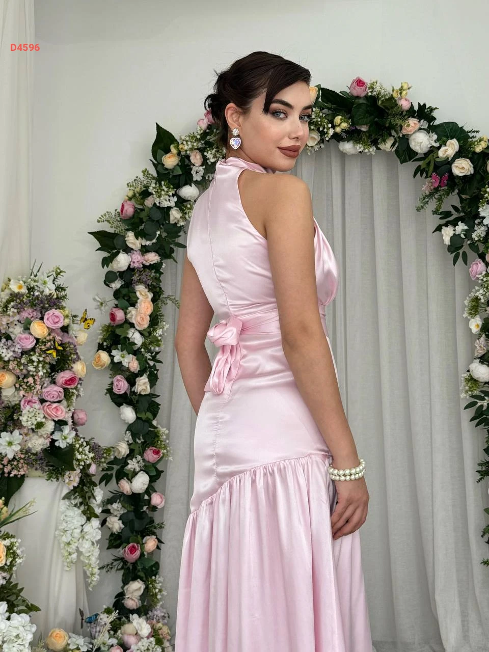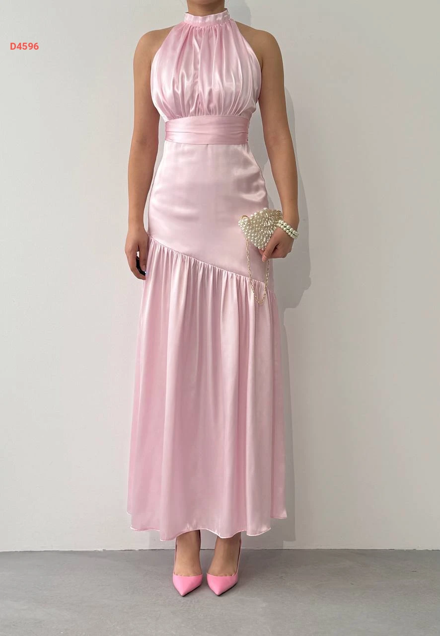فستان طويل ساتان حفر مع زنار