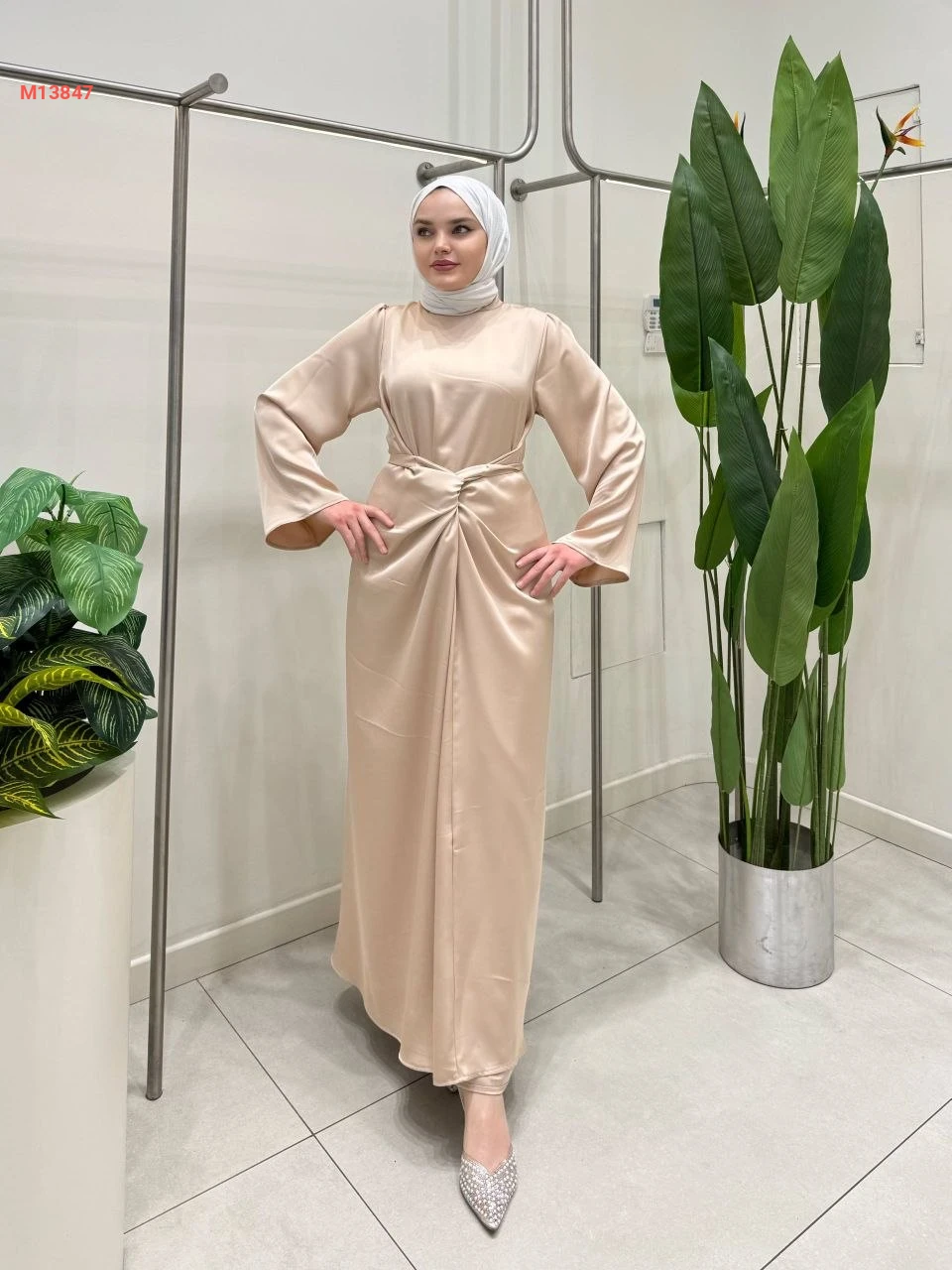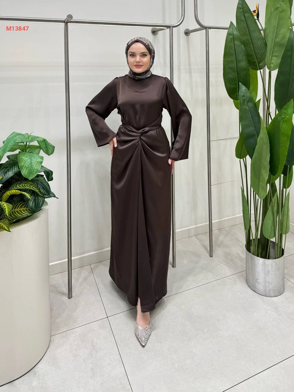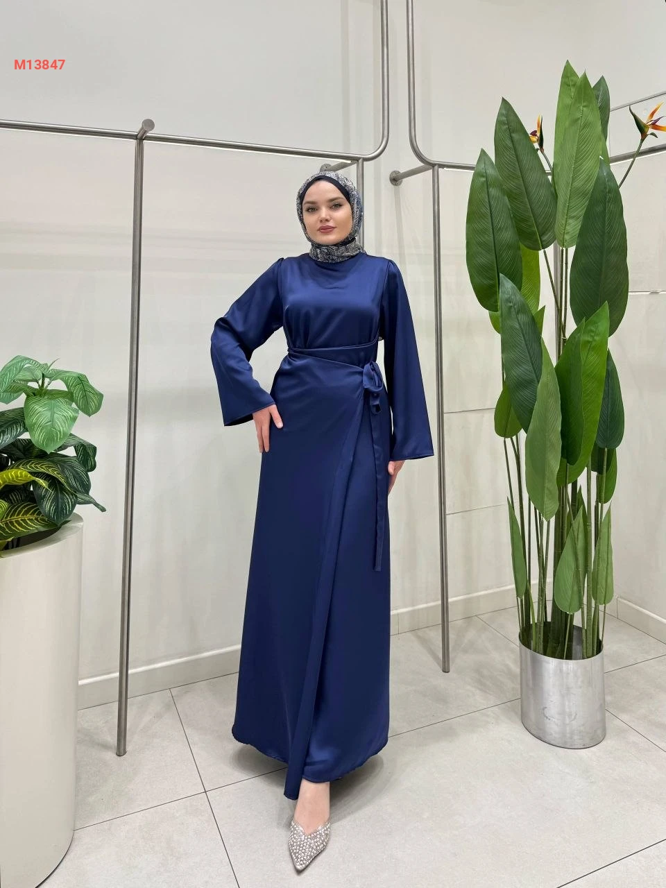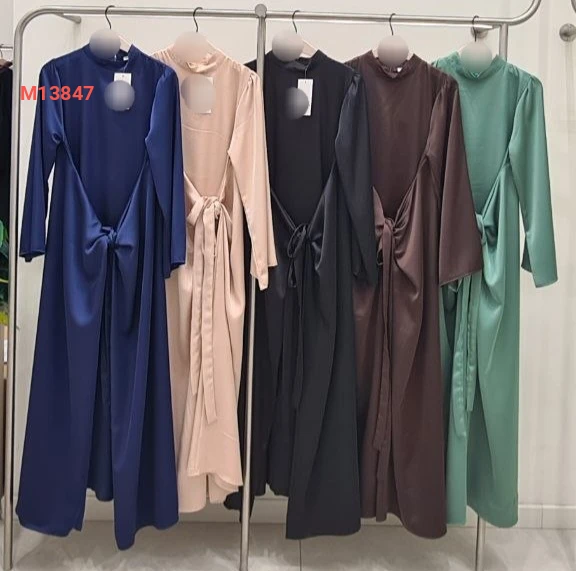 فستان طويل ساتان بربطة