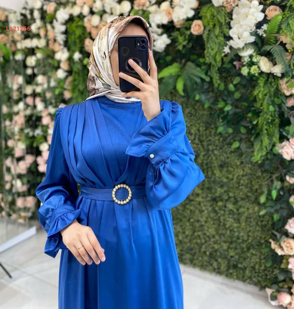 فستان طويل ساتان مع حزام