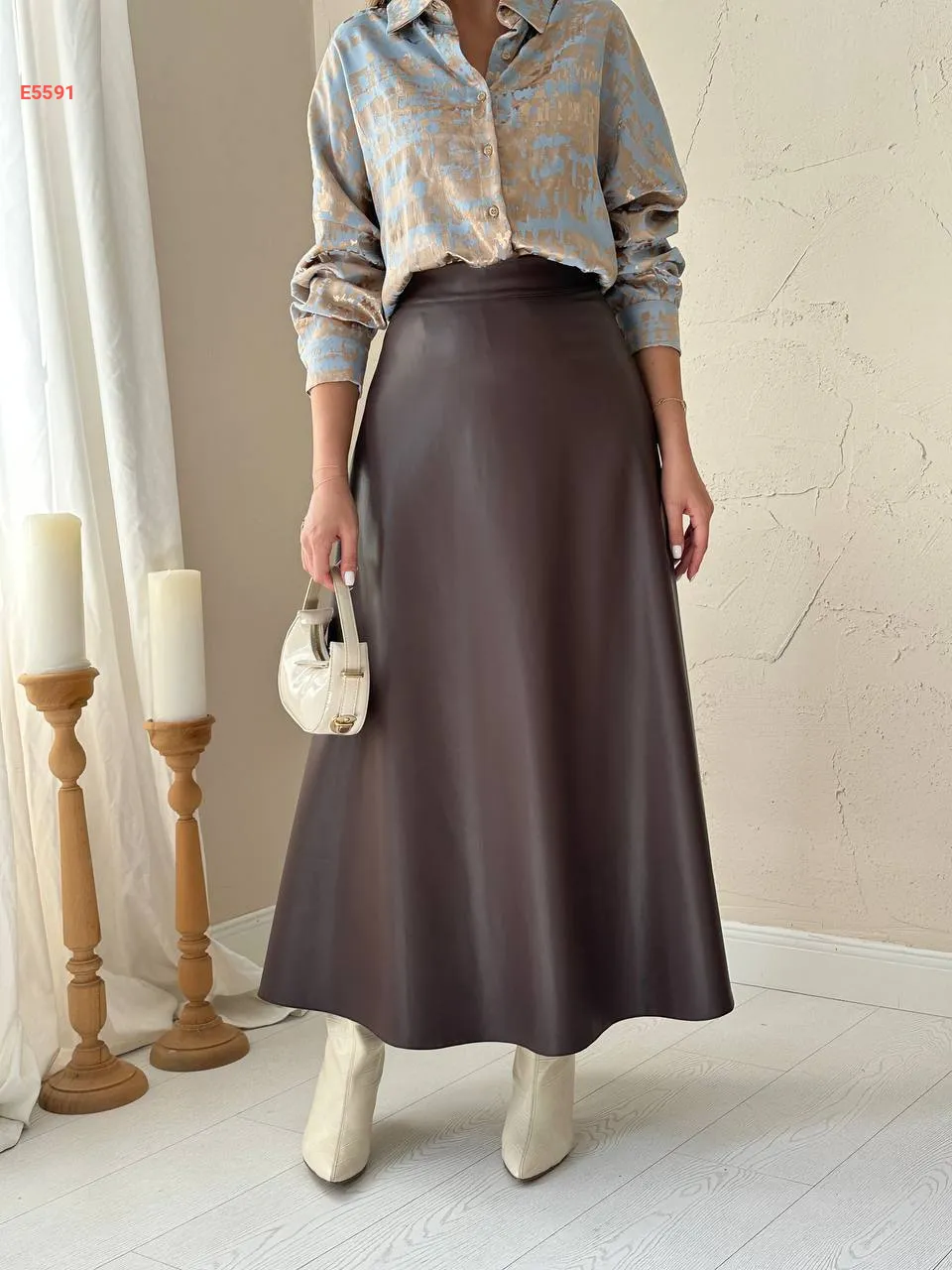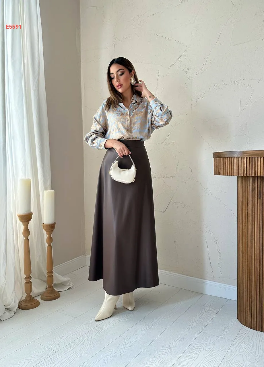 تنورة ساتان طويلة