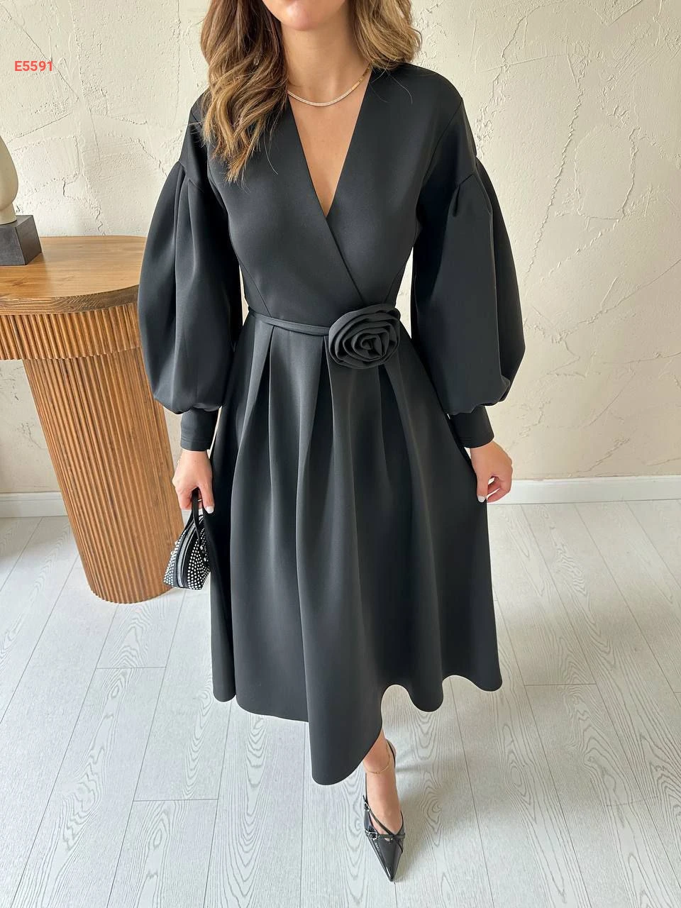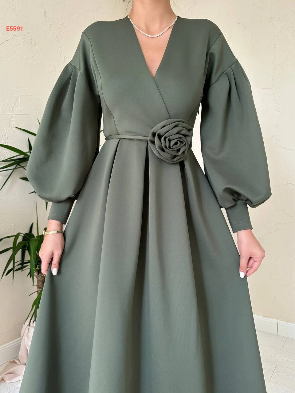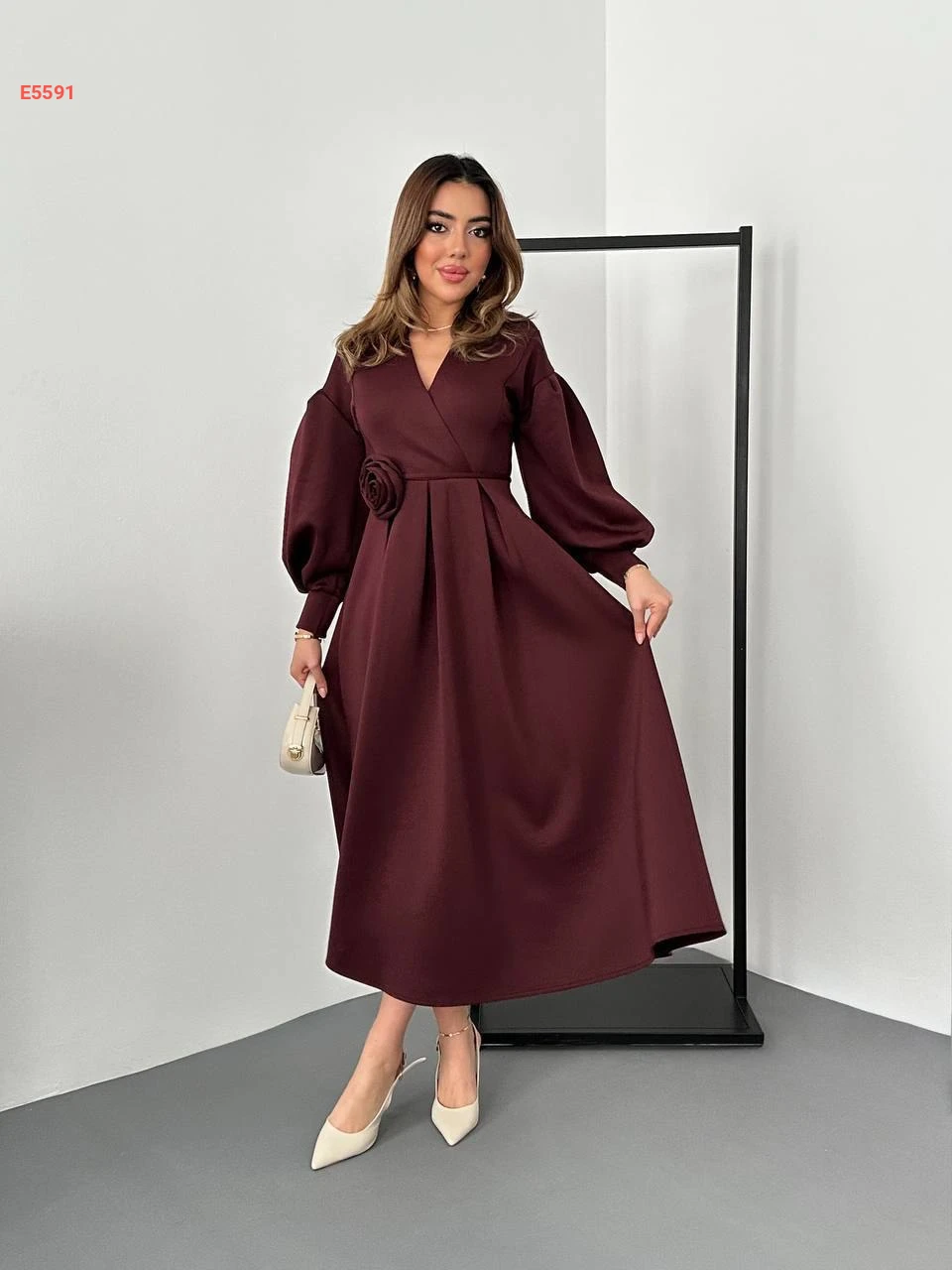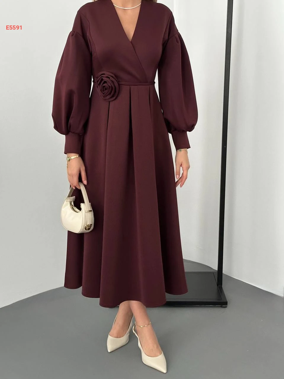 فستان طويل سكوبا مع زنار بوردة
