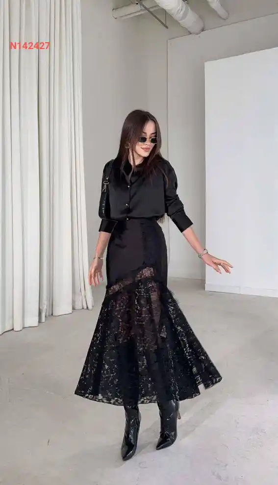 تنورة كلوش مع دانتيل