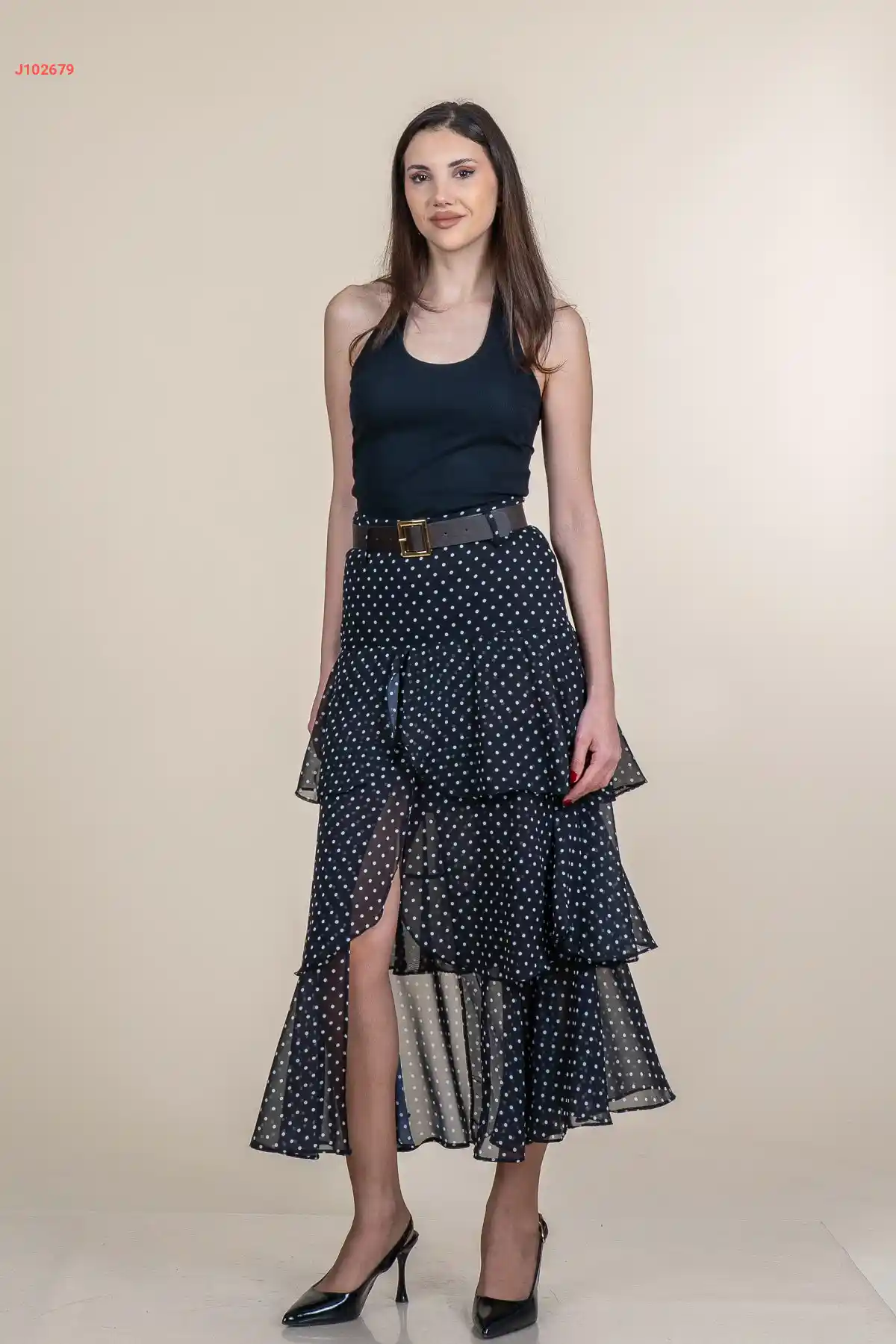 تنورة شيفون كشكش منقطة بفتحة