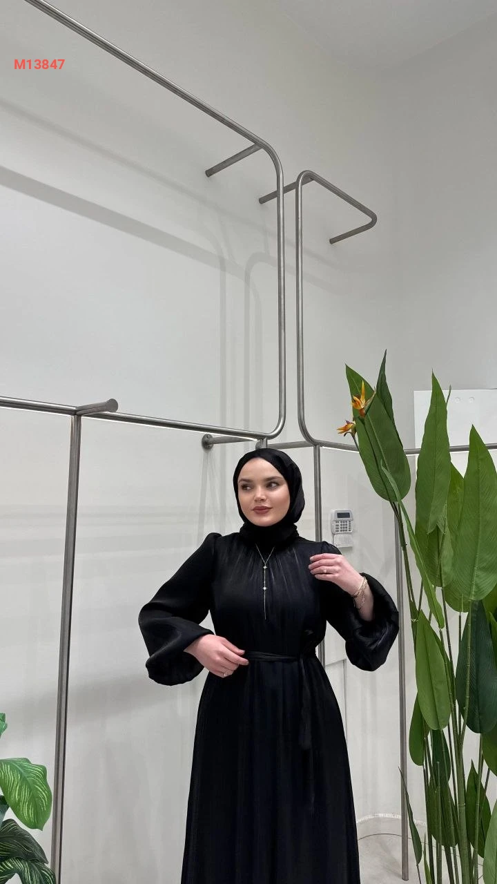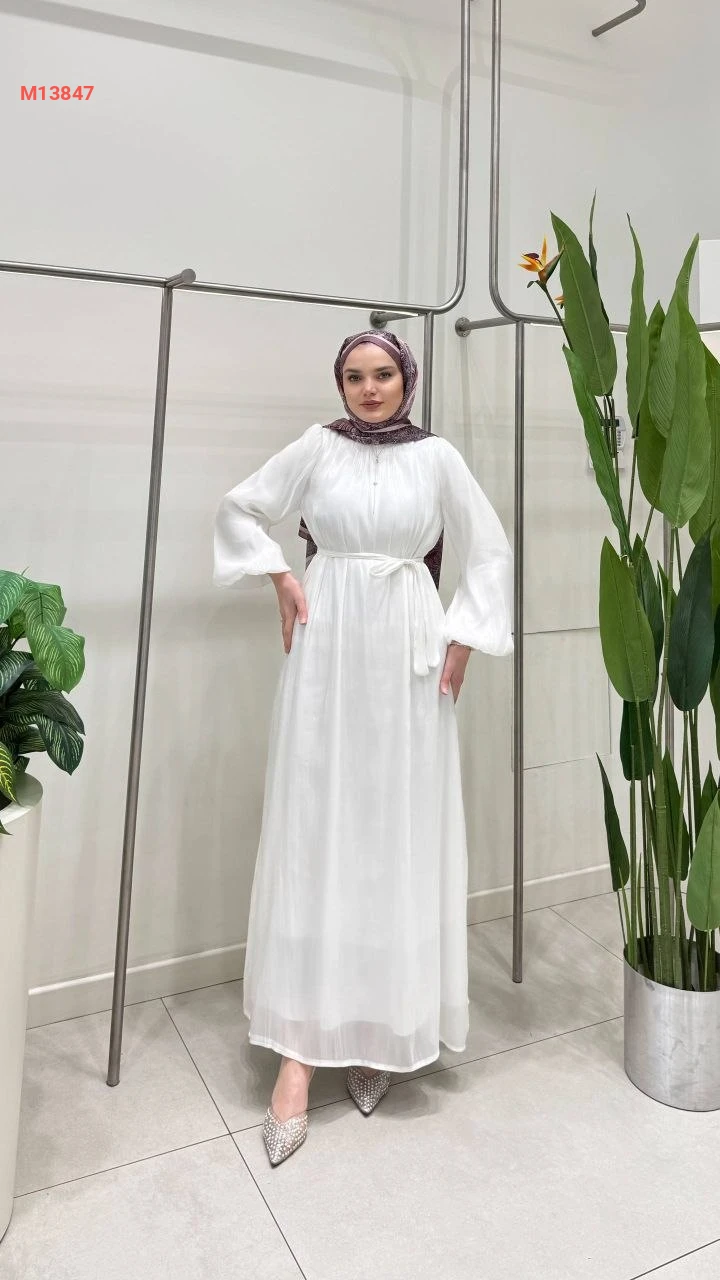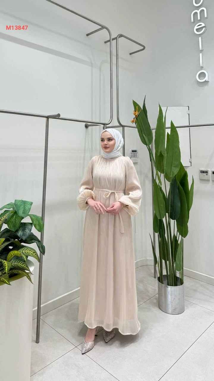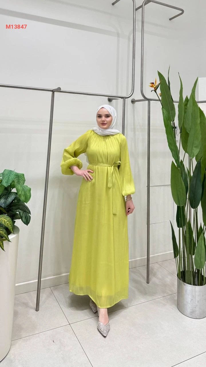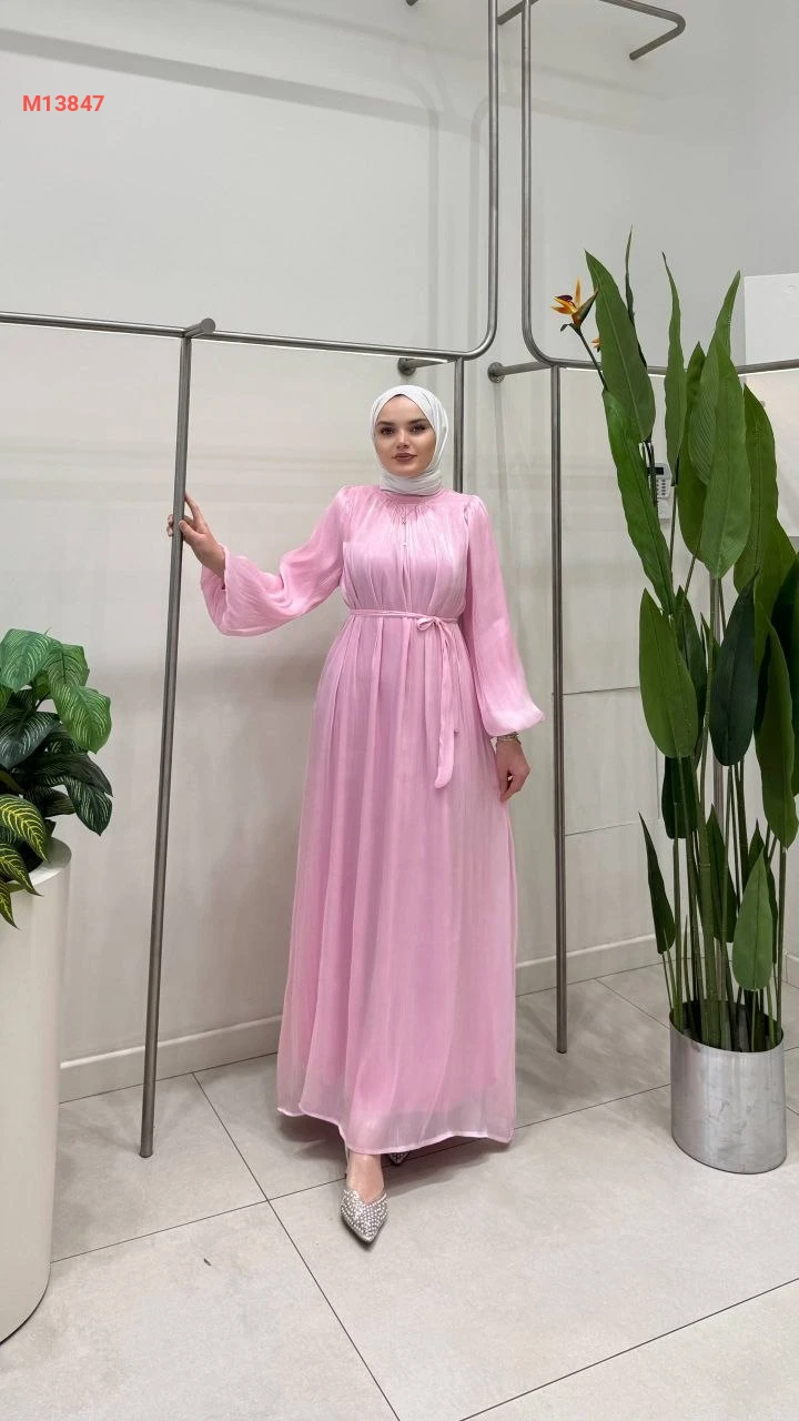 فستان طويل شفاف مبطن مع زنار