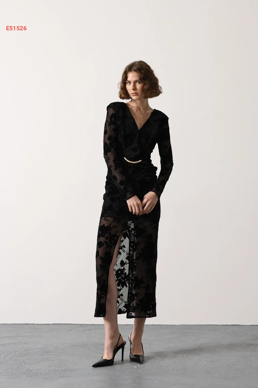 فستان طويل شفاف منقوش ورد