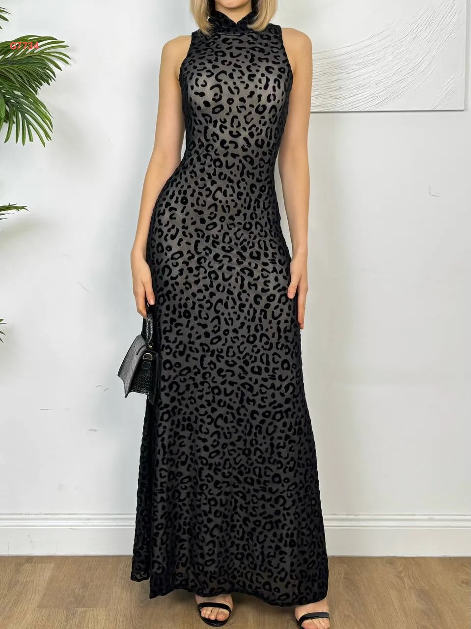 فستان طويل شفاف مبطن منقوش تايغر
