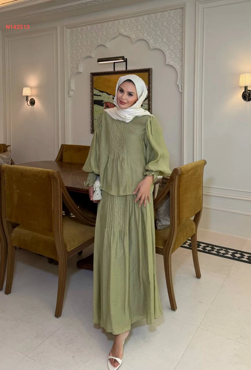 طقم تنورة طويل شفاف مبطن