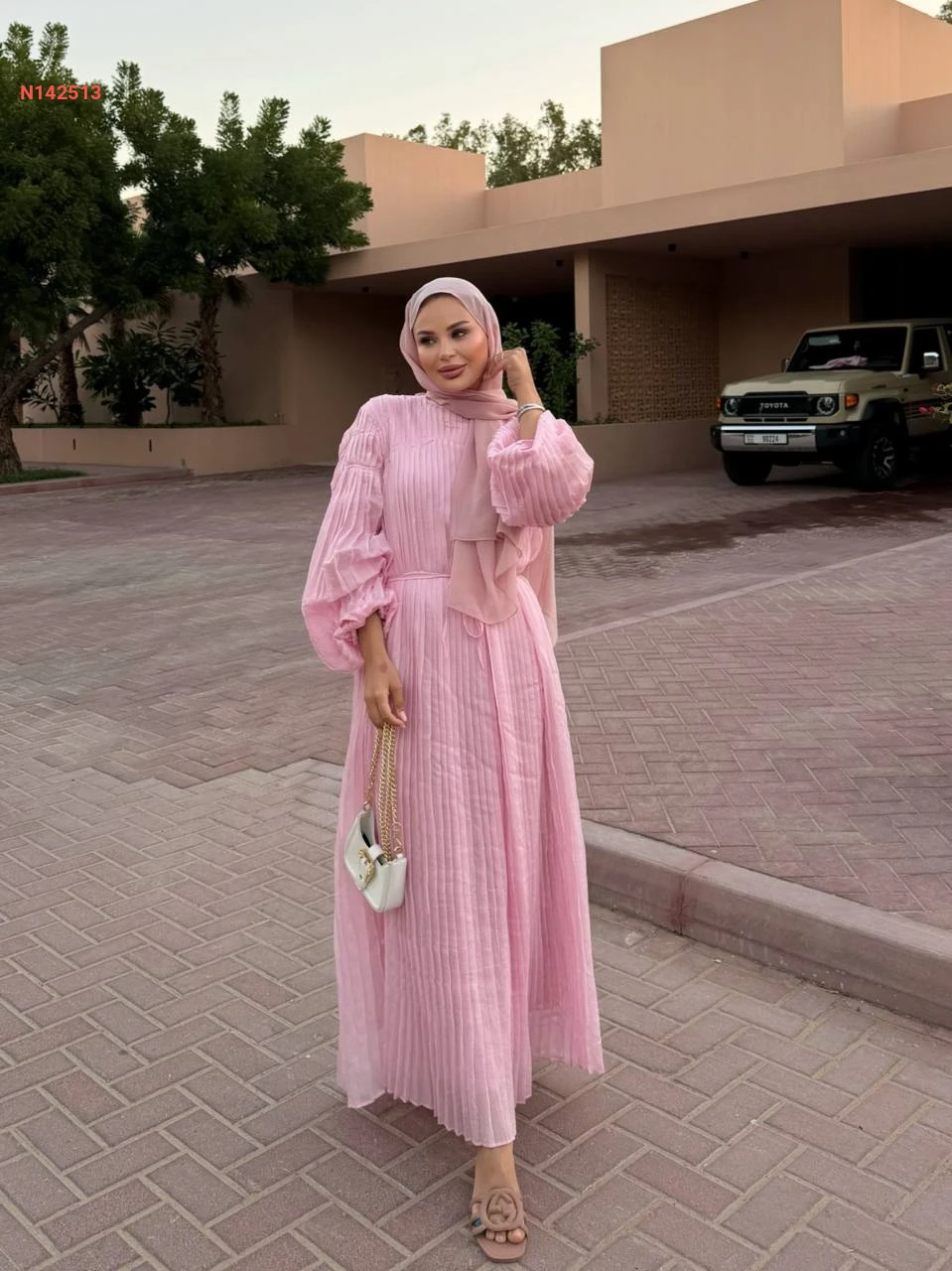 فستان طويل شفاف بليسيه مبطن